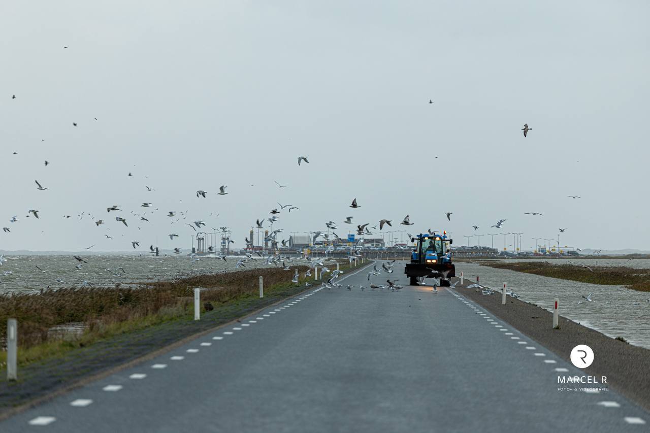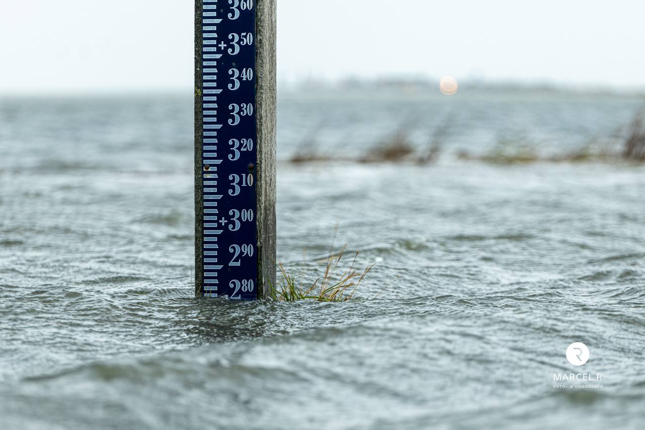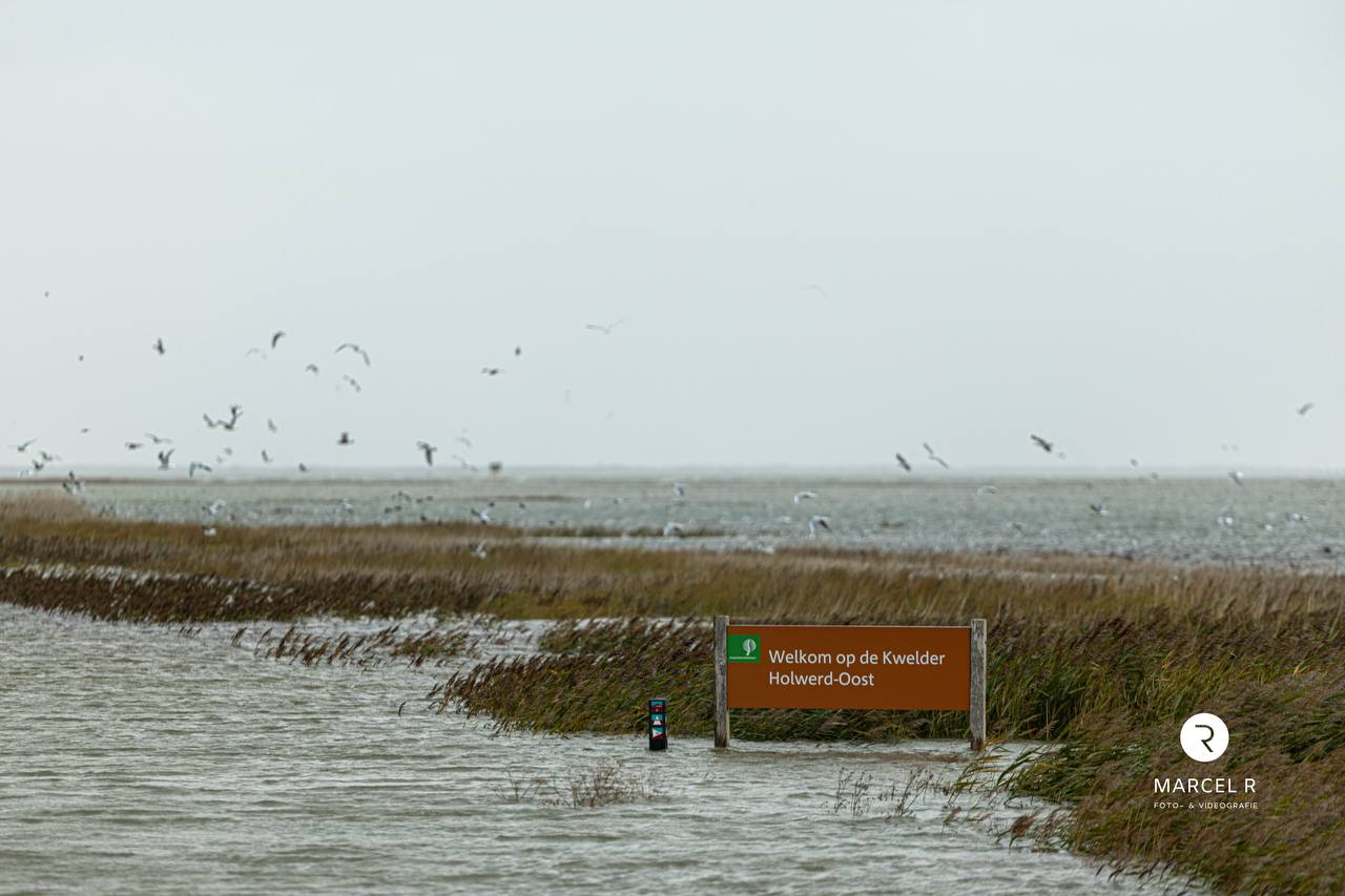 HOLWERT – Storm Amy heeft voor hoge waterstanden gezorgd in de Waddenzee. Vooral bij Holwert is dat goed te zien: de Grândyk naar de veerdam is afgesloten door de Provincie Fryslân.