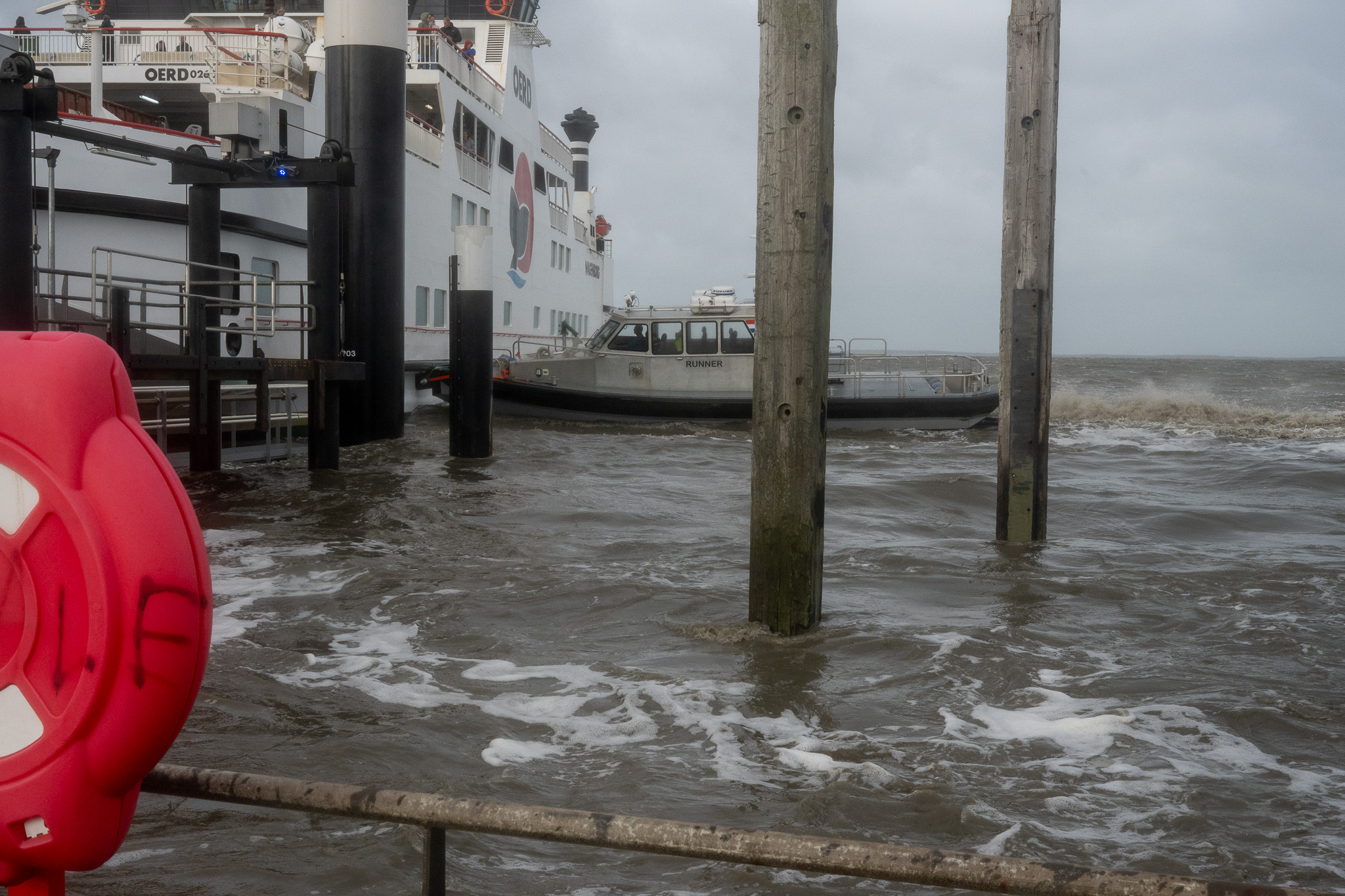 AMELAND/SCHIERMONNIKOOG – Door de hoge waterstanden zijn de veerdam op Ameland en de toegangsweg naar de veerhaven op Schiermonnikoog tijdelijk afgesloten. Veerdiensten waren vrijdagochtend gestremd en reizigers werd geadviseerd niet naar de pier te rijden.