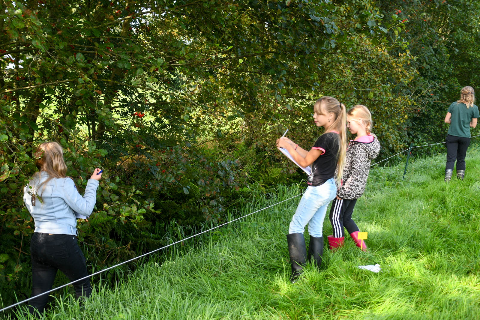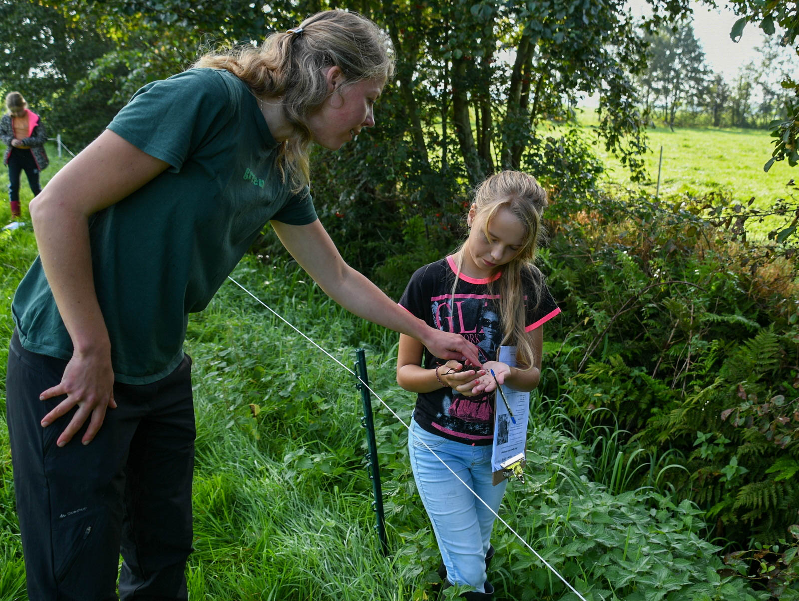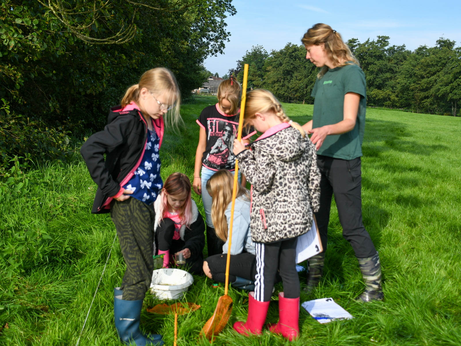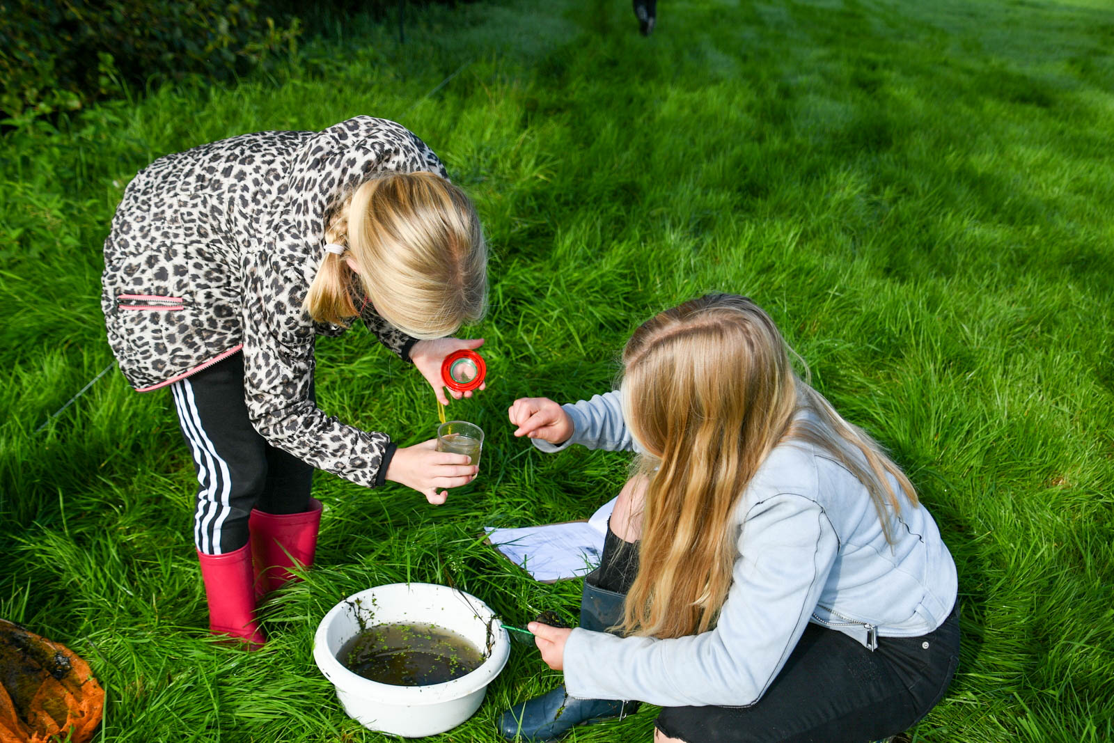 Een ander groepje ging met natuurgids Mirja Brandorff van de Klyster mee naar de elzensingels en kregen daar les in. Door het schudden aan een boom moesten ze ontdekken welke diertjes er uit vielen op een wit kleed. In de sloot zochten ze met schepnetjes naar diertjes en gingen die onder een vergrootglas bestuderen. Verder konden ze met een verrekijker vogels spotten en benoemen.