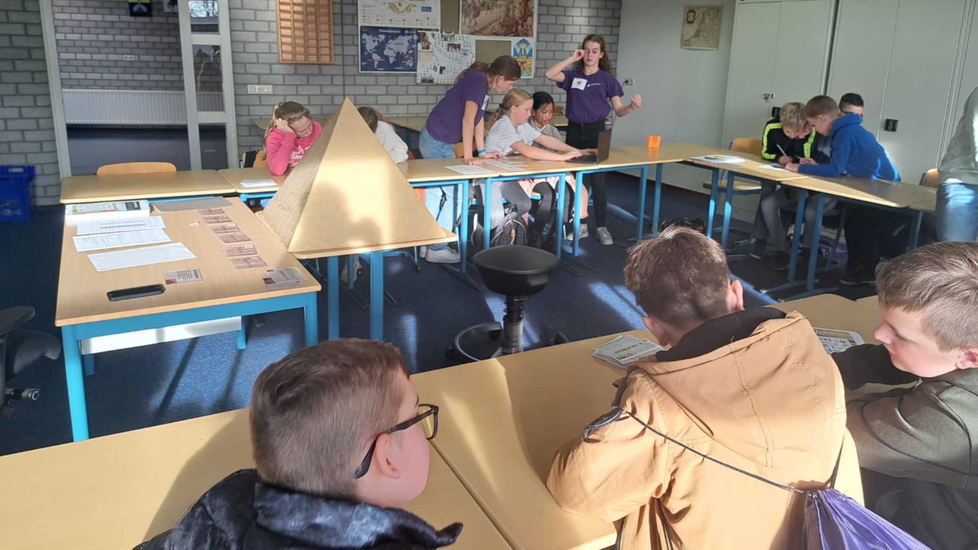 Zo kregen de leerlingen bij geschiedenis een escaperoom-achtige opdracht, waarbij ze door het juist beantwoorden van een vraag een farao uit een piramide konden bevrijden. Bij de talen Frans, Duits en Engels en Fries werd de talenkennis getest aan de hand van een detective opdracht. Bij wiskunde waren er dieren ontsnapt uit de dierentuin en door het verbinden van punten werden de dieren herkenbaar. In de praktijkafdeling Bouw, Wonen en Interieur werd een pindakaashouder gemaakt. In het splinternieuwe lokaal Zorg en Welzijn konden leerlingen popcorn bakken en tenslotte werd bij het nieuwe vak Technologie en Toepassing een opdracht gegeven aan de leerlingen waarbij ze uit moesten vinden hoe ze een op afstand bestuurbare bal in een vierkant moesten rollen. Kortom, een levendige middag met vele, nieuwe ervaringen. ,,Ik vond het een leuke middag en school. De leraren waren heel aardig”, aldus een leerling uit groep 8.