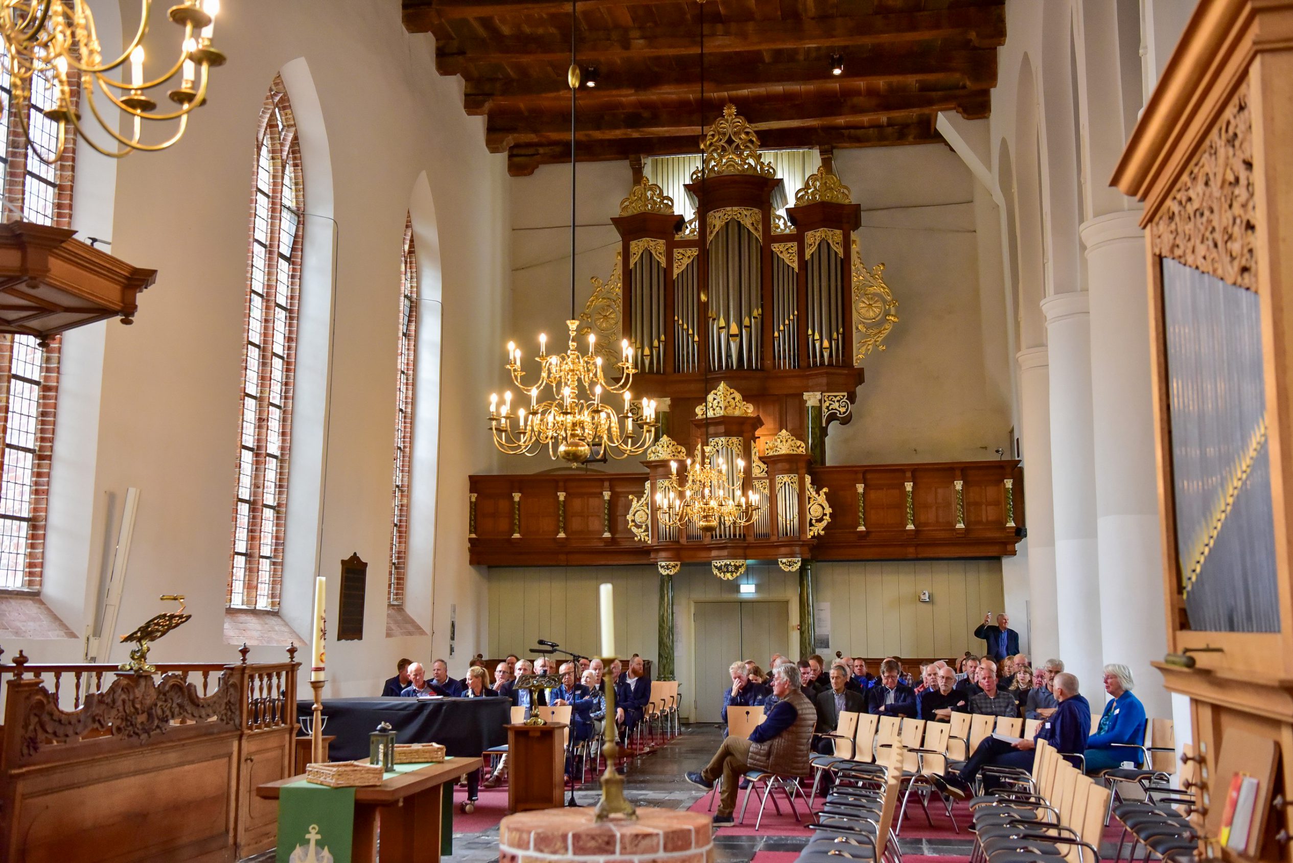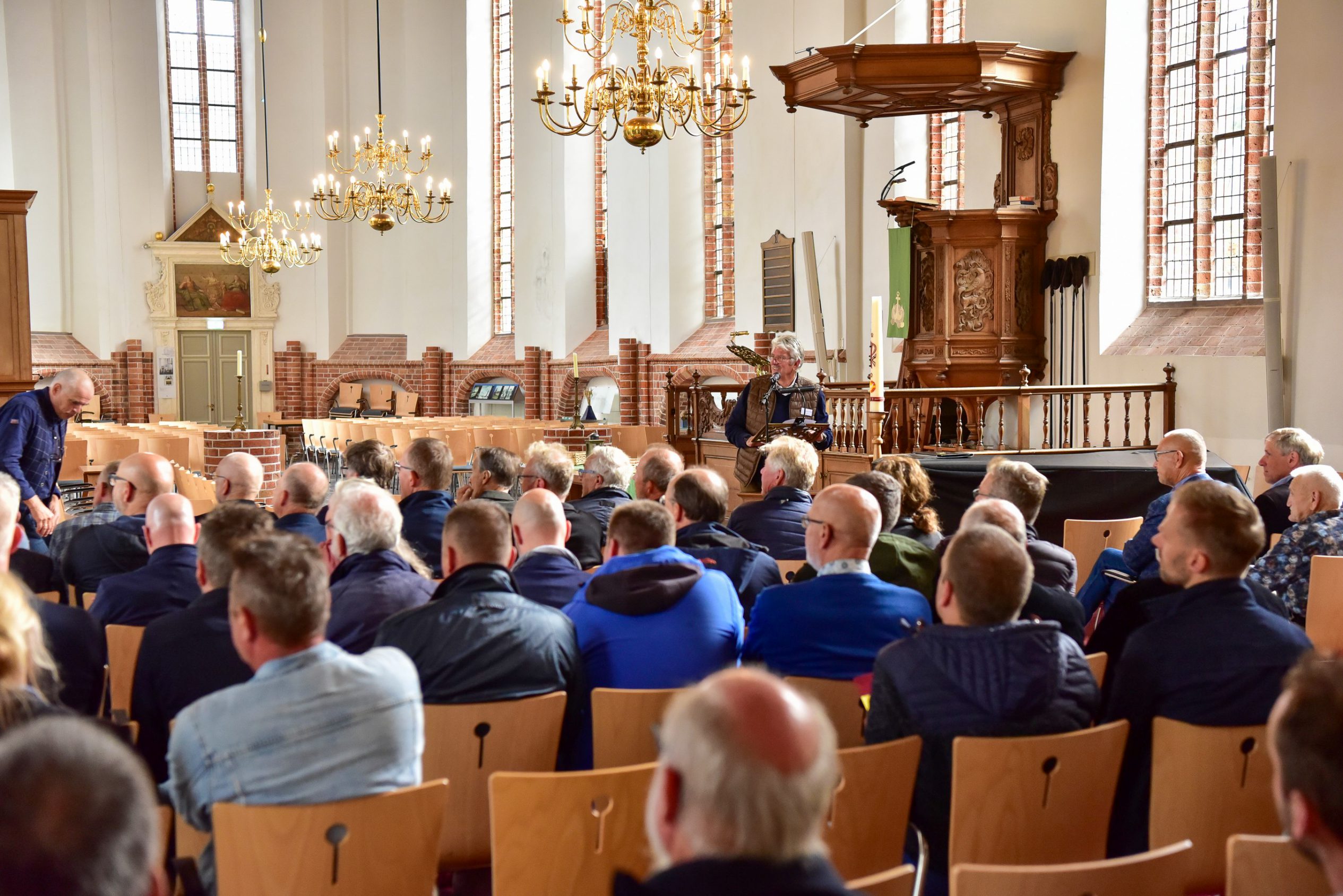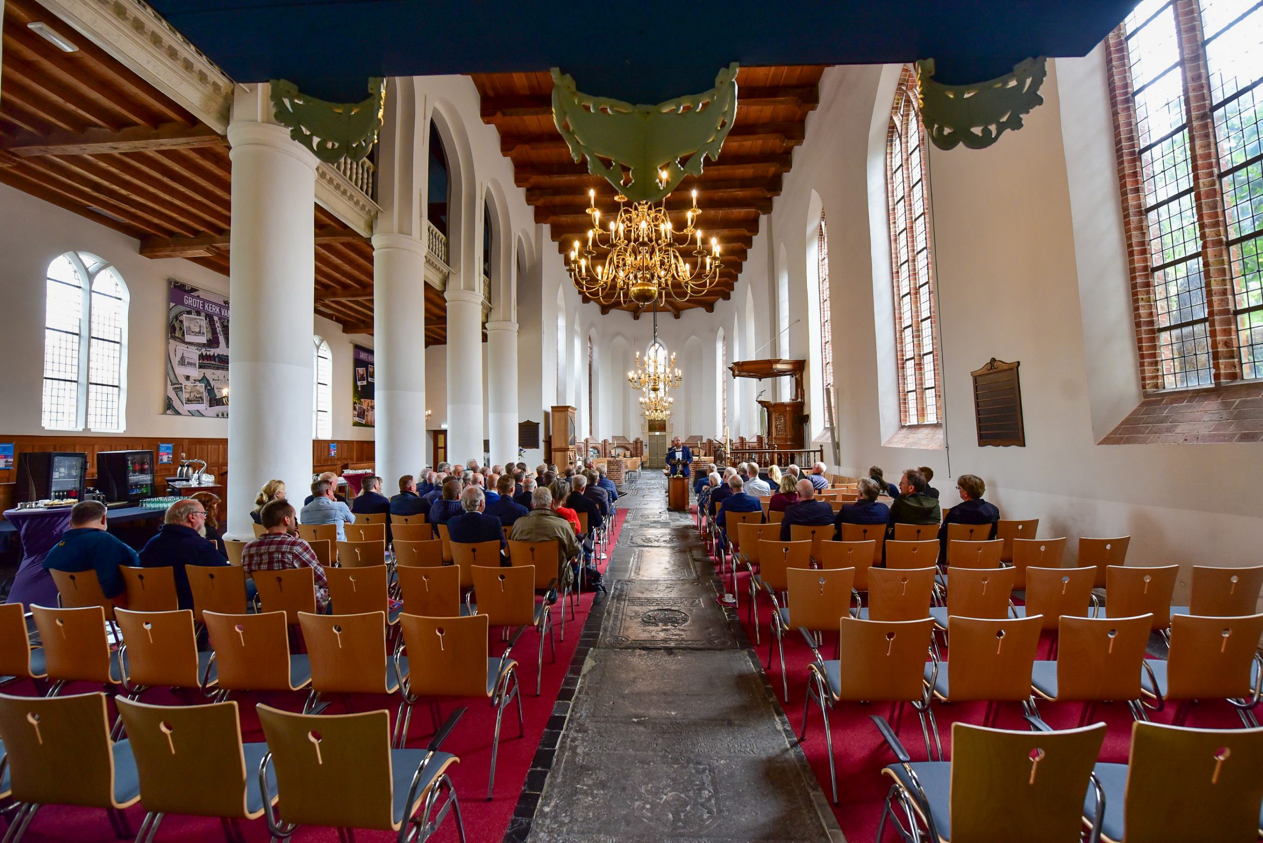 Op 6 oktober organiseerde de stichting een speciaal symposium in de Grote Kerk, waar gerenommeerde sprekers de verhalen van monumenten tot leven brengen. “Der wurdt hjir fan ‘e middei in lêzing holden oer it ûndersyk wat in dendrolooch útfierd hat op de spanten hjir op ‘e souder om de âlderdom fan it hout te bepalen”, aldus Henk van der Veen, voorzitter van Stichting Monumentenbehoud Noardeast-Fryslân. Dat is een bijzondere aangelegenheid want normaal gesproken mag er bijna niemand op de zolder van de grote kerk in Dokkum komen. Ook een bezoeker die veertien jaar lang molenaar is geweest vertelt enthousiast te zijn om op de zolder te mogen kijken: “It liket my wol aardich, ik ha gelokkich gjin hichtefrees”.