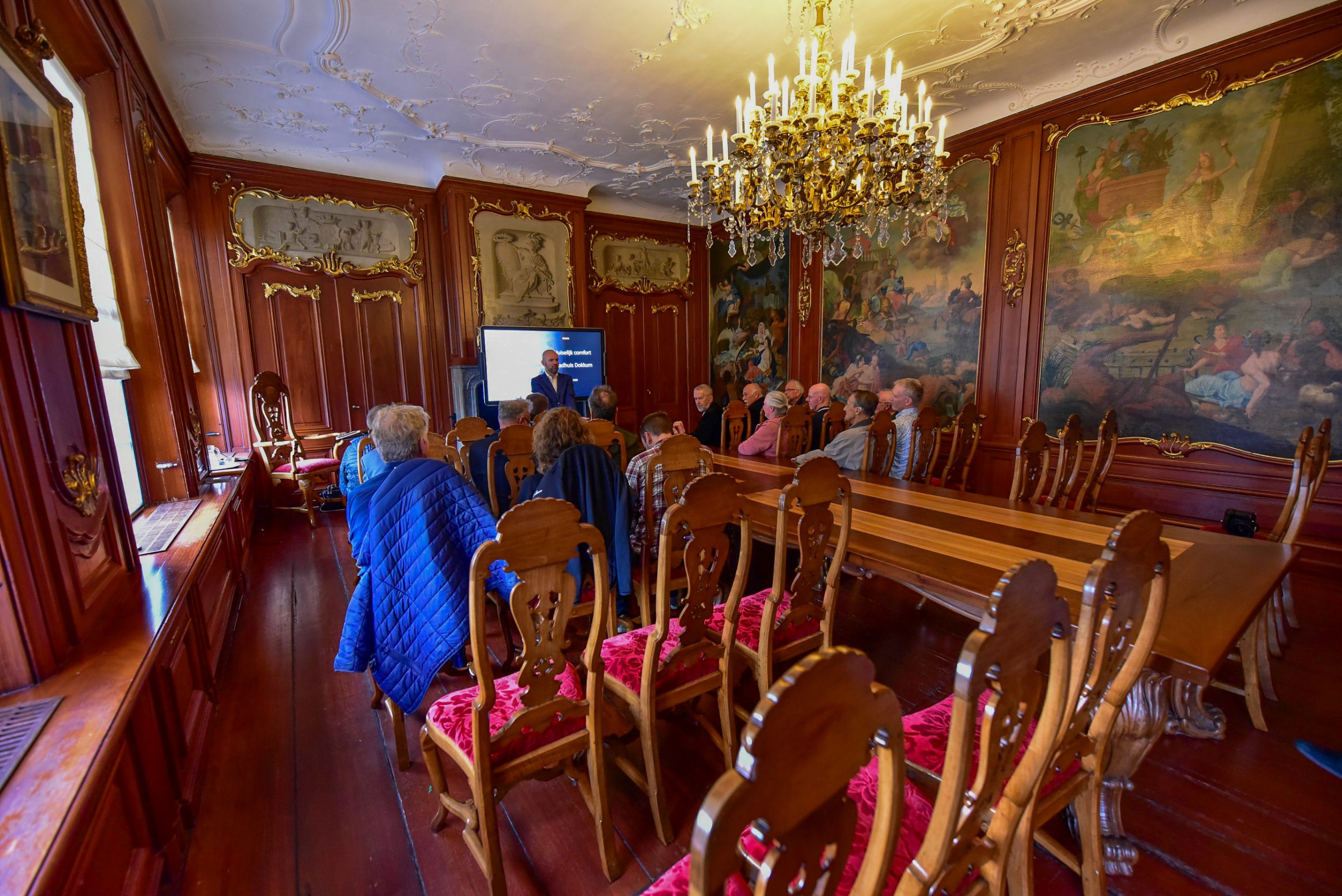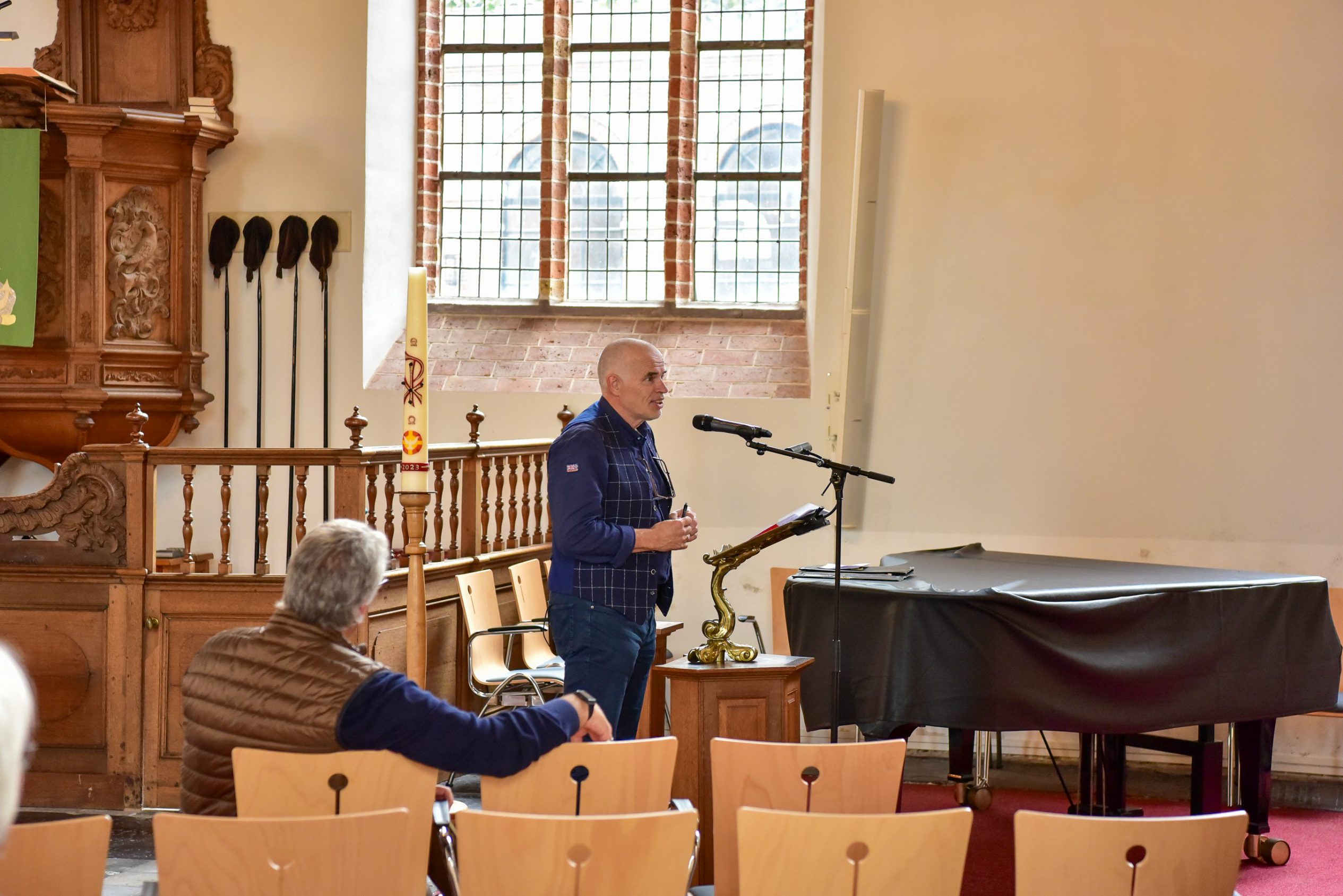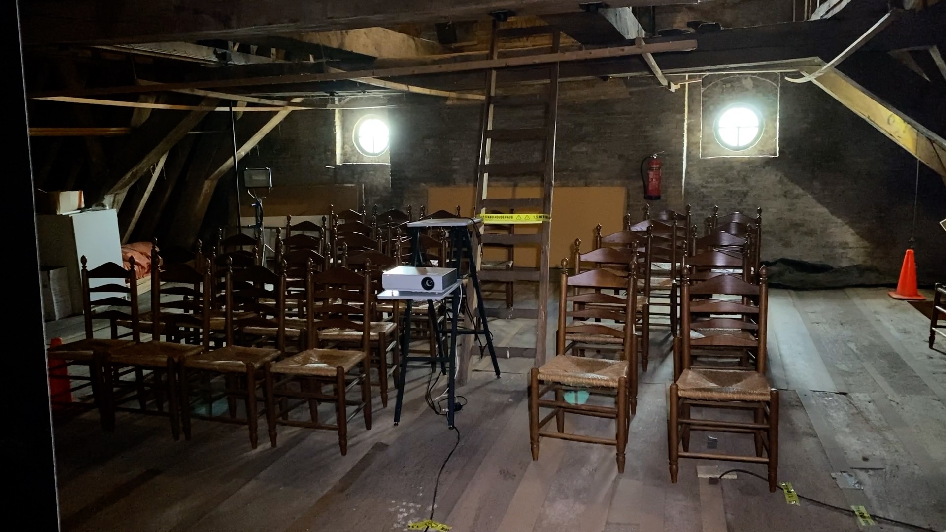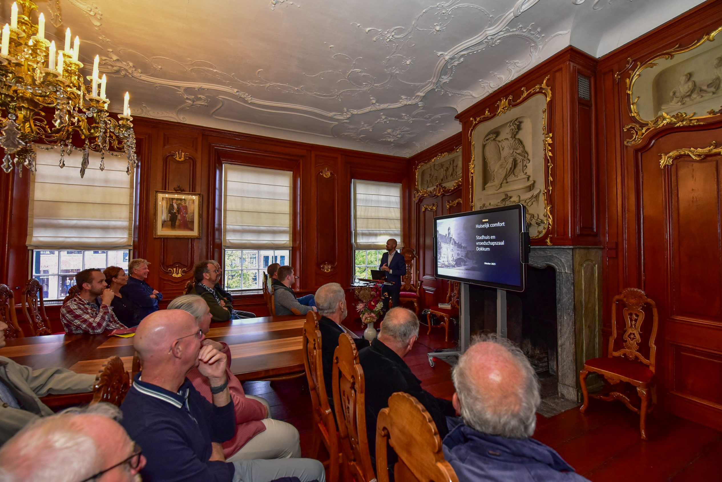 Op 6 oktober organiseerde de stichting een speciaal symposium in de Grote Kerk, waar gerenommeerde sprekers de verhalen van monumenten tot leven brengen. “Der wurdt hjir fan ‘e middei in lêzing holden oer it ûndersyk wat in dendrolooch útfierd hat op de spanten hjir op ‘e souder om de âlderdom fan it hout te bepalen”, aldus Henk van der Veen, voorzitter van Stichting Monumentenbehoud Noardeast-Fryslân. Dat is een bijzondere aangelegenheid want normaal gesproken mag er bijna niemand op de zolder van de grote kerk in Dokkum komen. Ook een bezoeker die veertien jaar lang molenaar is geweest vertelt enthousiast te zijn om op de zolder te mogen kijken: “It liket my wol aardich, ik ha gelokkich gjin hichtefrees”.