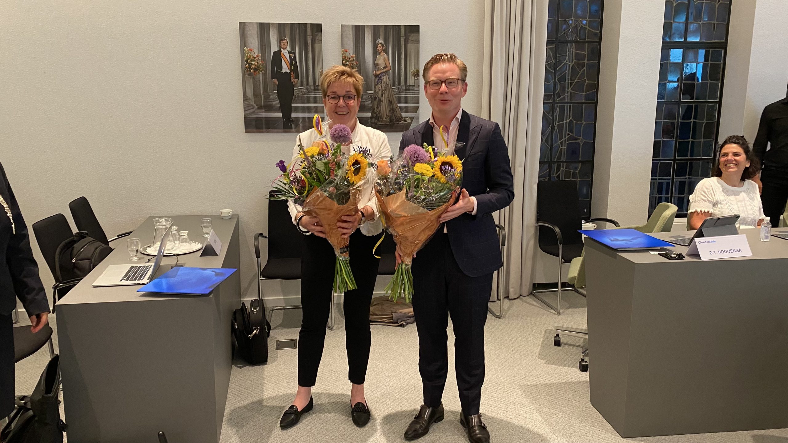 Na de toespraken van burgemeester Jeroen Gebben en gemeentesecretaris Maaike van Gils kregen Andries Bouman en Gelbrig Hoekstra als cadeau een Elfstedenbruggetje, ook kregen ze elk een persoonlijke cartoon tekening gebaseerd op hun periode als wethouder aangeboden. Na afloop kon iedereen nog wat napraten onder het genot van een hapje en een drankje.