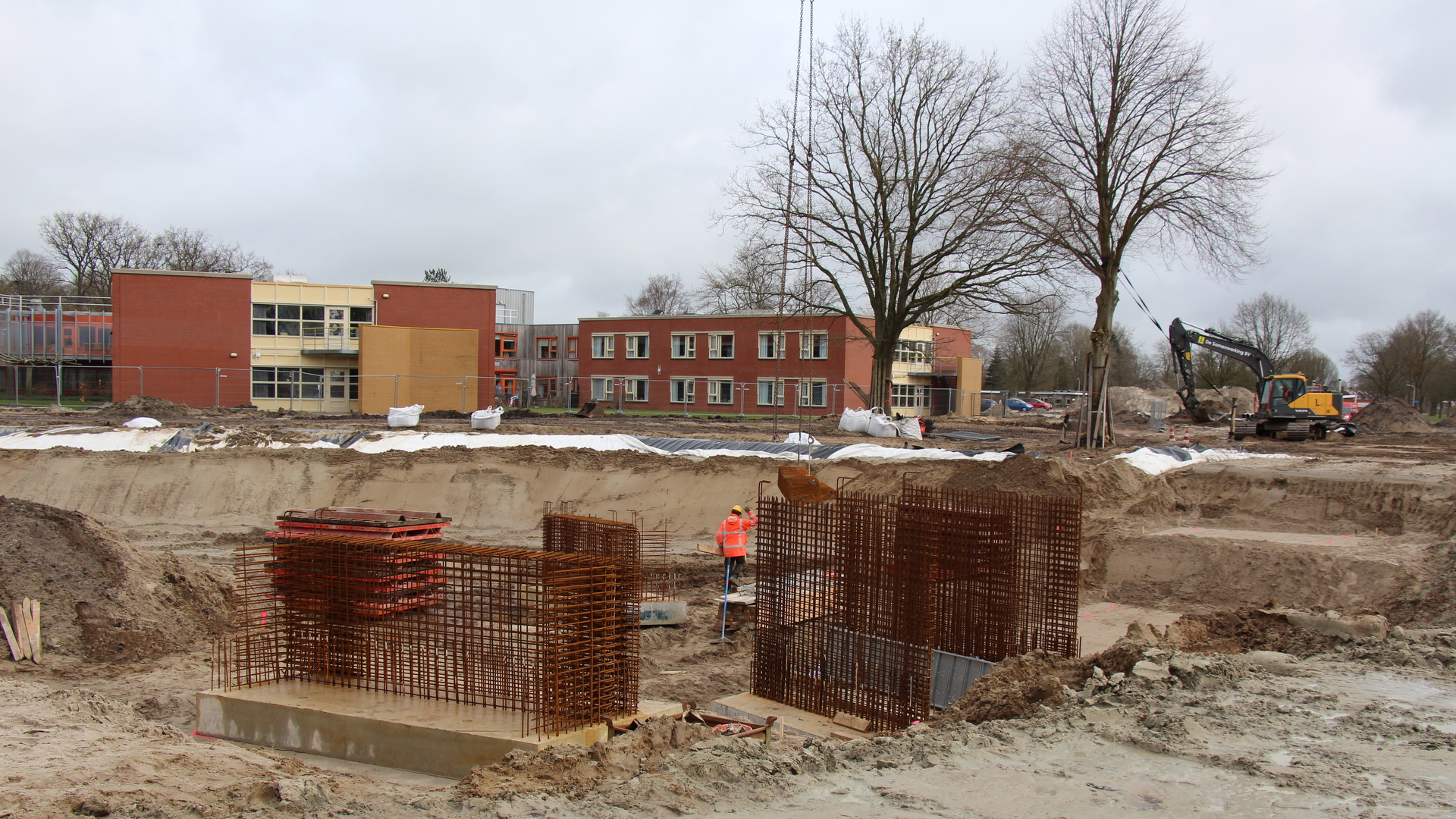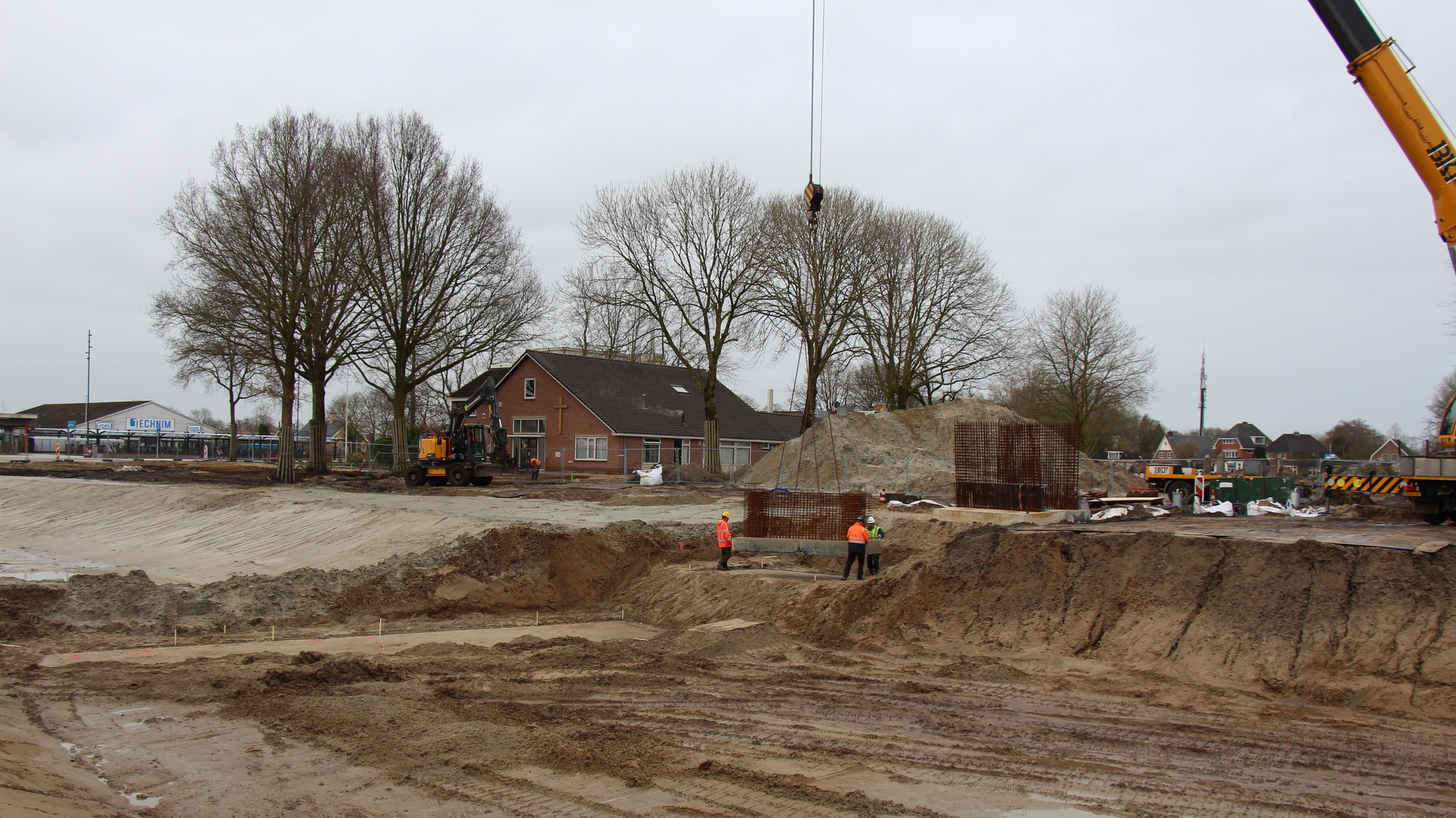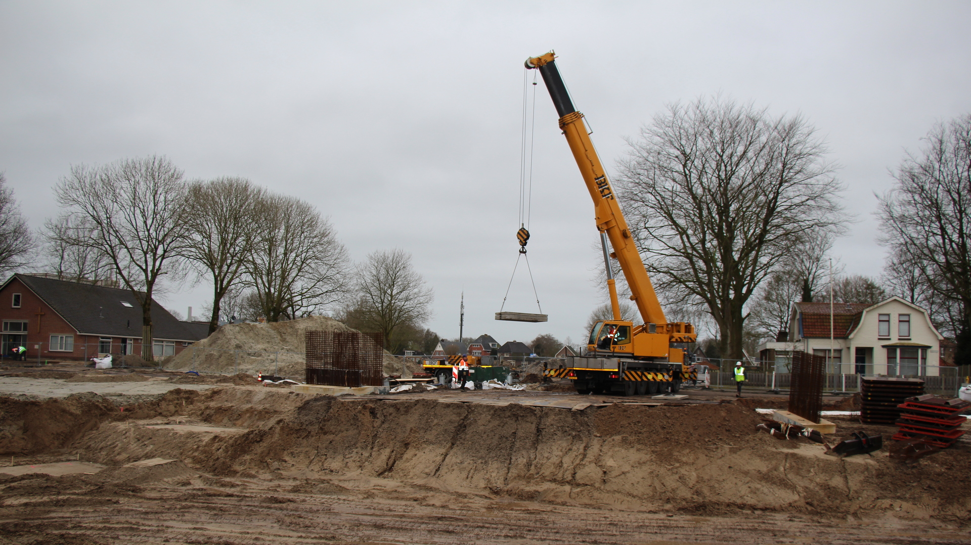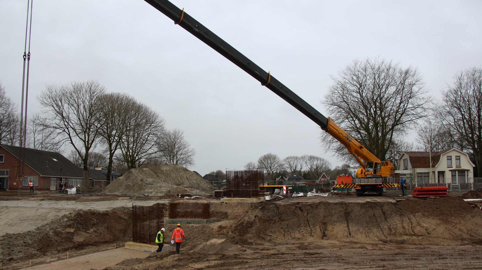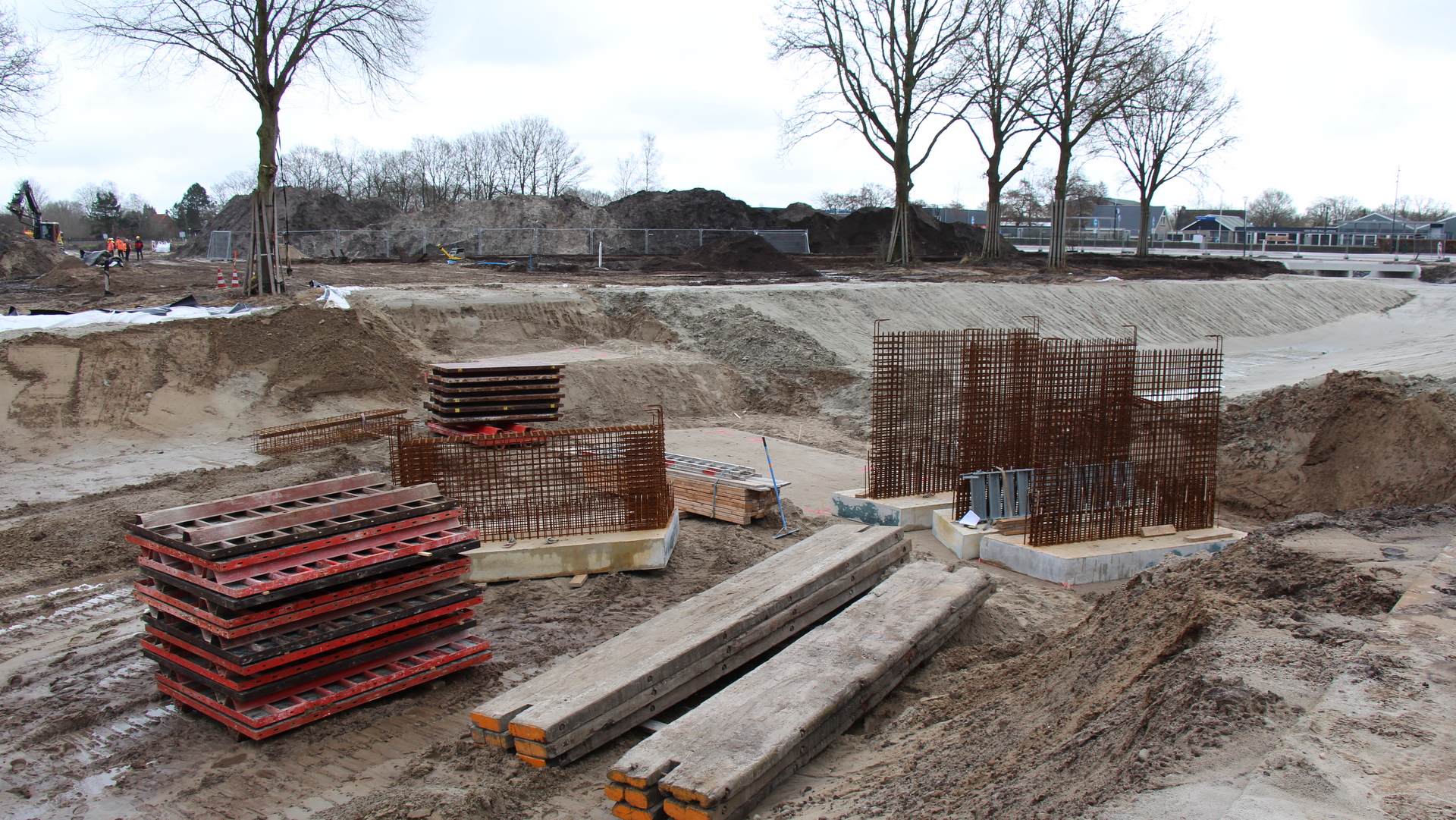 De basis van de brug is neergezet, en de volgende stap is de brug bouwen op locatie zelf. ,,Het plaatsen van de pijlers is qua maatvoering altijd even een uitdaging, maar ik zie het helemaal goed komen allemaal”, vertel projectleider Boele Dijkstra.