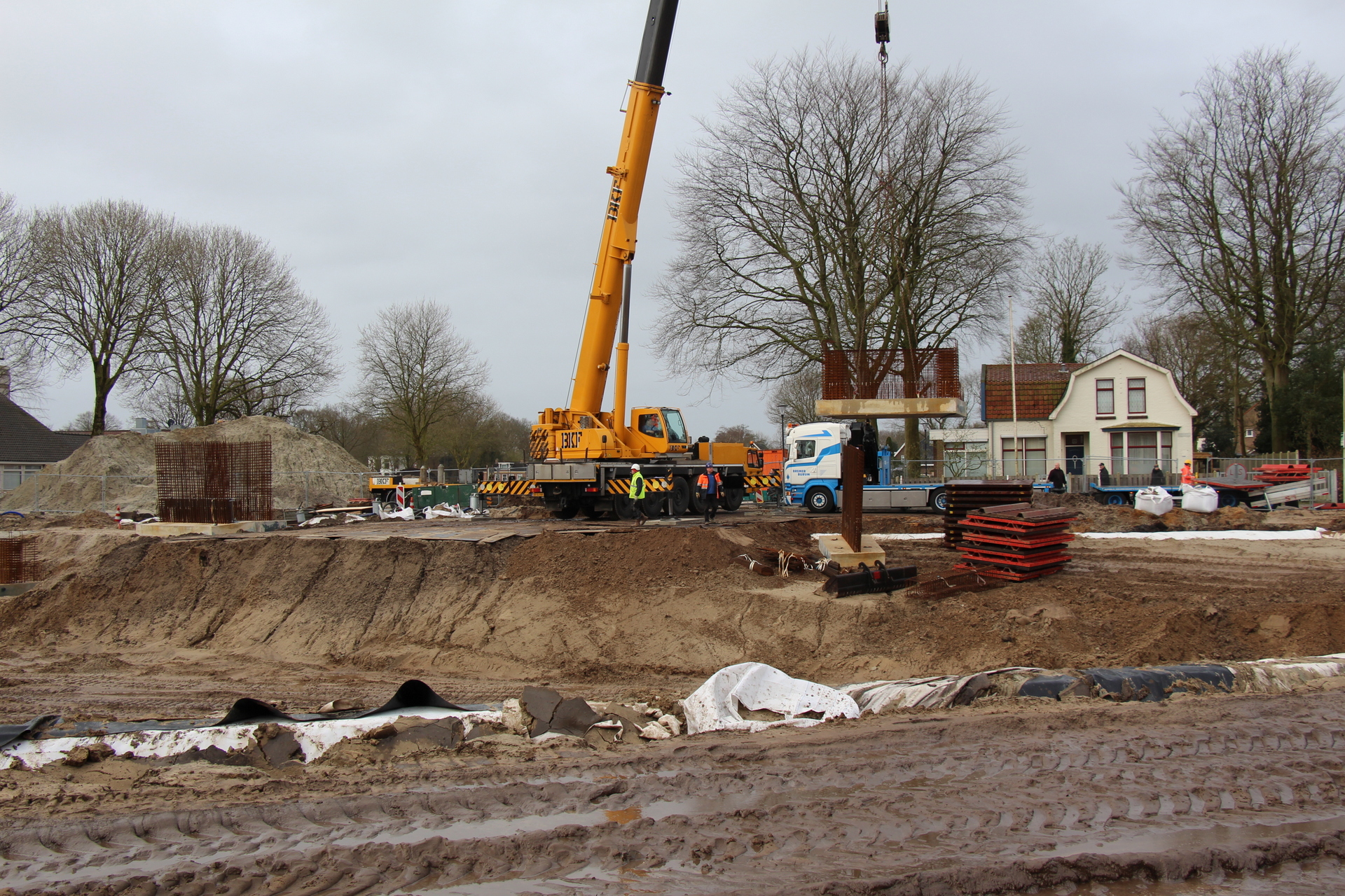 FEANWÂLDEN – Bij het project Kansen in Kernen in Feanwâlden is al een hele ontwikkeling te zien. Donderdag zijn ze begonnen met de pijlers te plaatsen van de nieuwe brug die wordt aangelegd in het park.