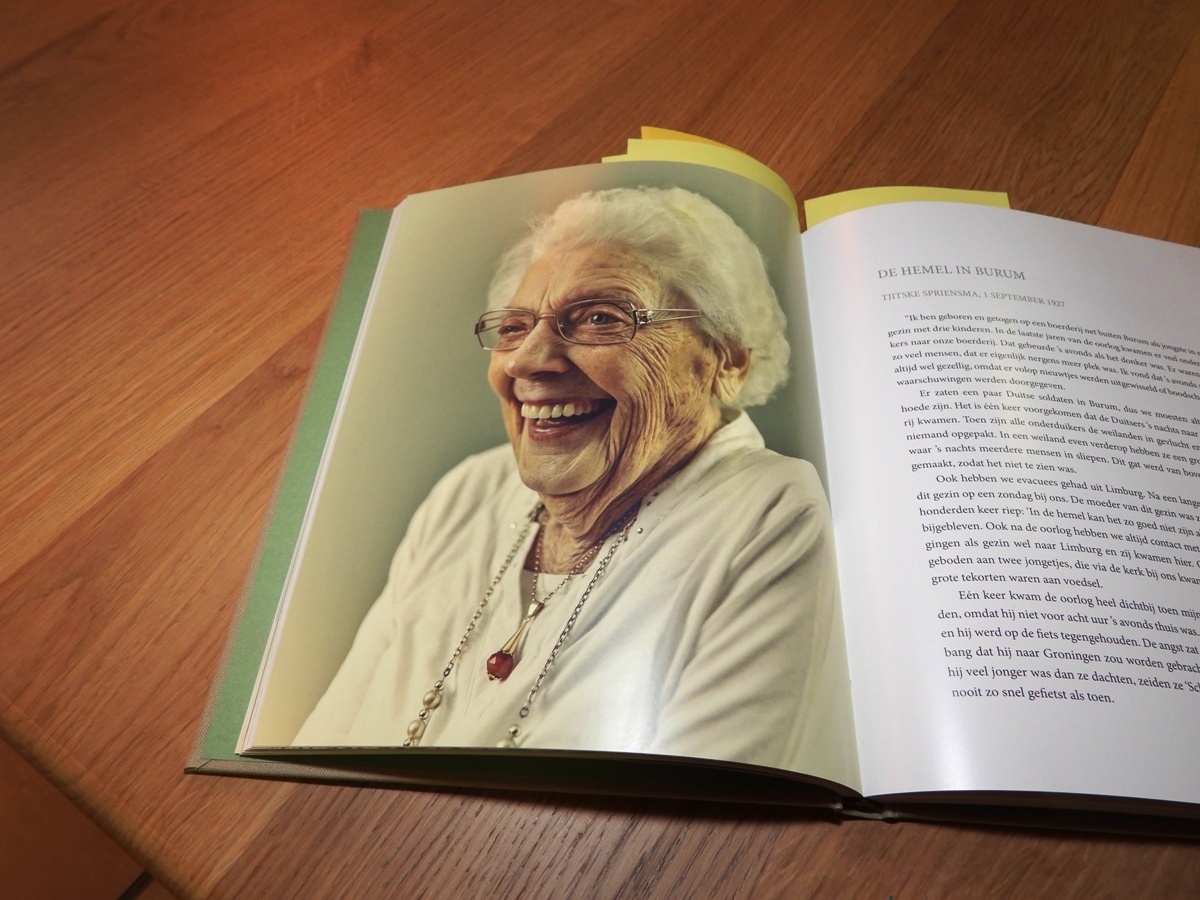 Het boek werd overhandigd aan de 93-jarige Tjitske Spriensma, die de bevrijding meemaakte in Burum. Martha Bijlstra, welzijnscoördinator overhandigde het boek in het bijzin van enkele aanwezigen. Het was een bijzonder moment voor zowel de aanwezigen als mevrouw Spriensma: ”Wie had dit nou verwacht dat ik dit zou meemaken? Ik niet!”