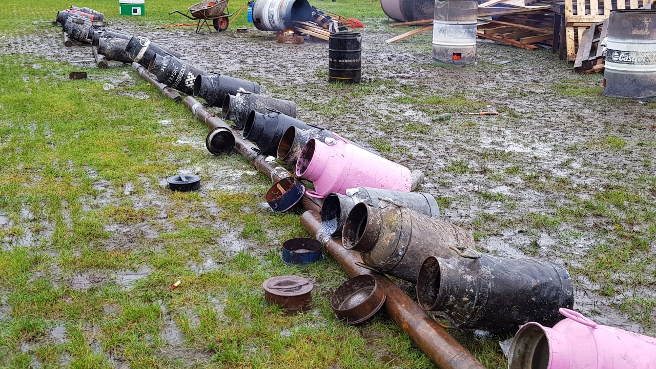 Op een drekkerig terrein schoot de carbidploeg van Kollumerzwaag er lekker op los. Met een 20 á 30 man en 25 bussen werd er geschoten tot het donker werd.