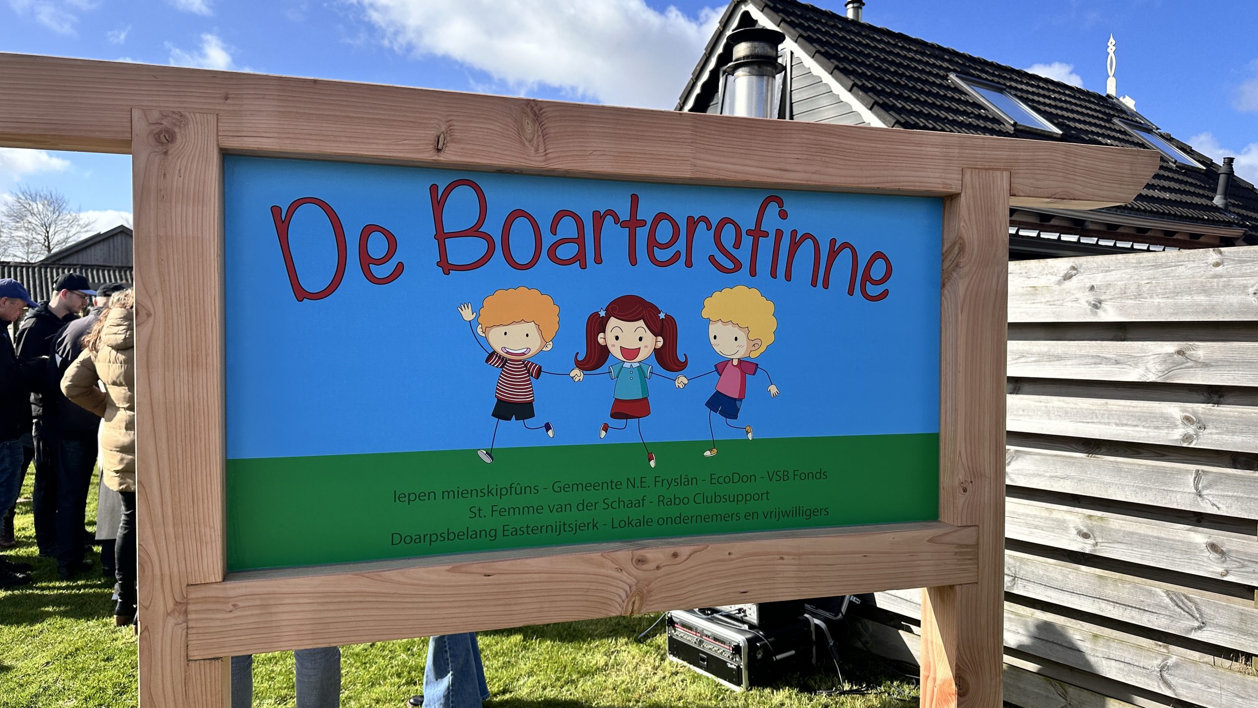 De kinderen van de basisschool van Easternijtsjerk zijn nauw betrokken geweest bij de totstandkoming van de speeltuin. Zo hebben ze eerder een sponsorloop georganiseerd om het laatste geld voor de speeltuin bij elkaar te krijgen. Ook hebben twee leerlingen de naam van de speeltuin bedacht. Via een wedstrijd mochten alle kinderen hun ideeën insturen, en de jury heeft uiteindelijk gekozen voor de naam “De Boartersfinne”, bedacht door Menthe en Anna Meike, die met toeval beide de zelfde naam hadden ingestuurd. Menthe onthulde samen met wethouder Hanneke Jouta de nieuwe naam. Anna Meike kon helaas in verband haar vakantie niet aanwezig zijn.
