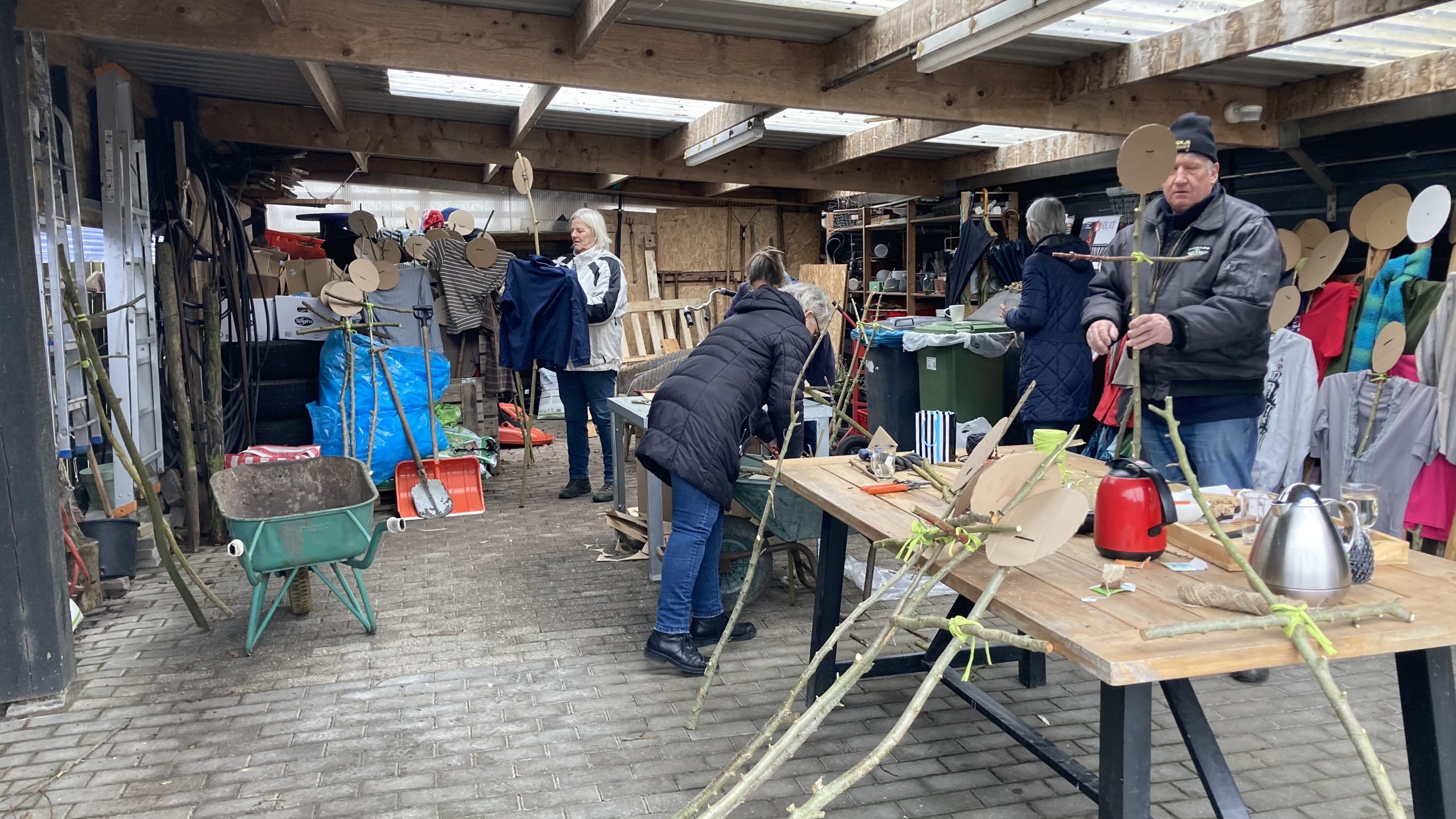 In totaal hebben de dorpstuin dames zo’n 200 poppen gemaakt. Voor die poppen is natuurlijk materiaal nodig: ,, We hebben hout en latten verzameld. Ook gebruiken we stukjes karton en daar maken we de hoofden van ”, vertelt Carolien Fardin, een andere vrijwilliger die meehelpt.