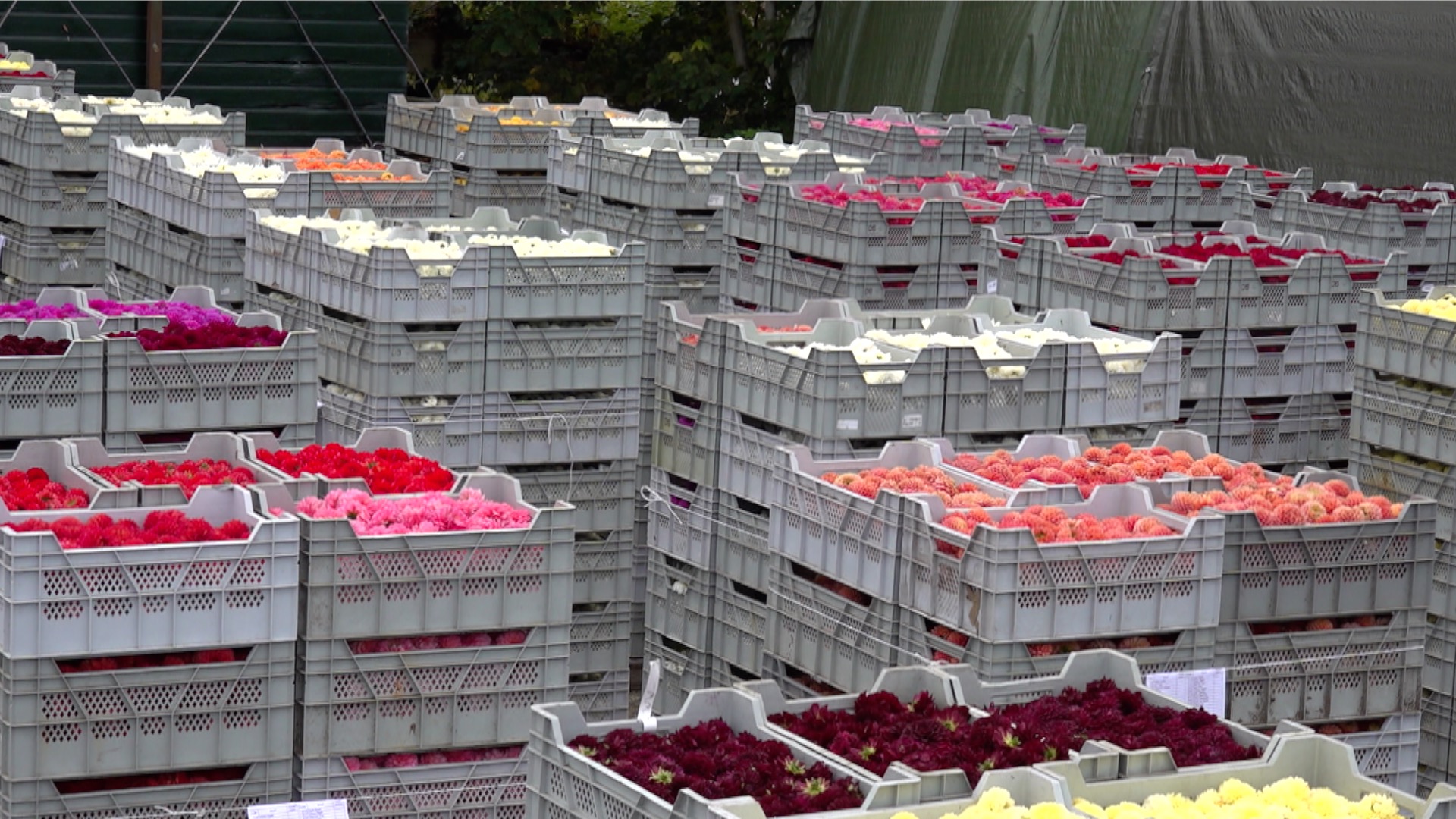 De tienduizenden bloemen komen uit Brabant en dat is niet zonder reden: “De blommen komme út Zundert. Dat is fansels in eintsje fierderop, mar dêr binne se hjir hiel goed yn ha se fjilden fol mei dahlia blommen. Dêrneist hawwe wy mei dizze ûndernimmer goede konneksjes en komme de blommen altyd goed en optiid oan. En, dat is ek wichtich”, legt Jellie Hamstra uit.
