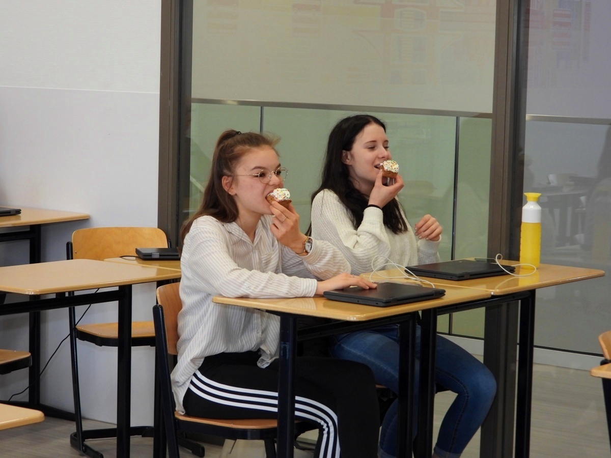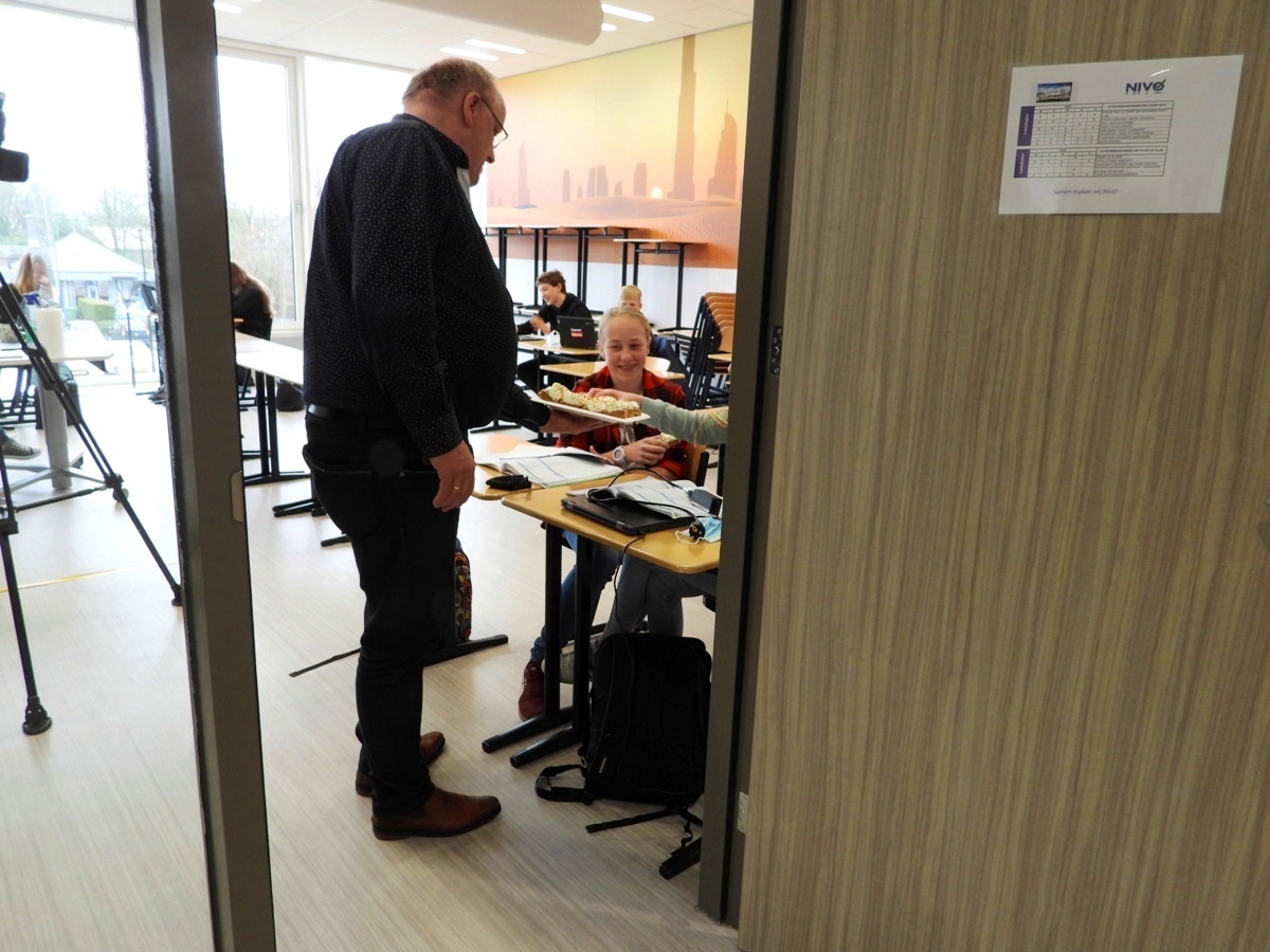 KOLLUM – Voor alle leerlingen die dinsdag weer voor het eerst sinds maanden op het Lauwers College in Kollum waren, kregen van de school een gebakje. Kay en Rick mochten vandaag ook weer fysiek op school aanwezig zijn. Beide jongens zijn enorm blij met de versoepelingen.