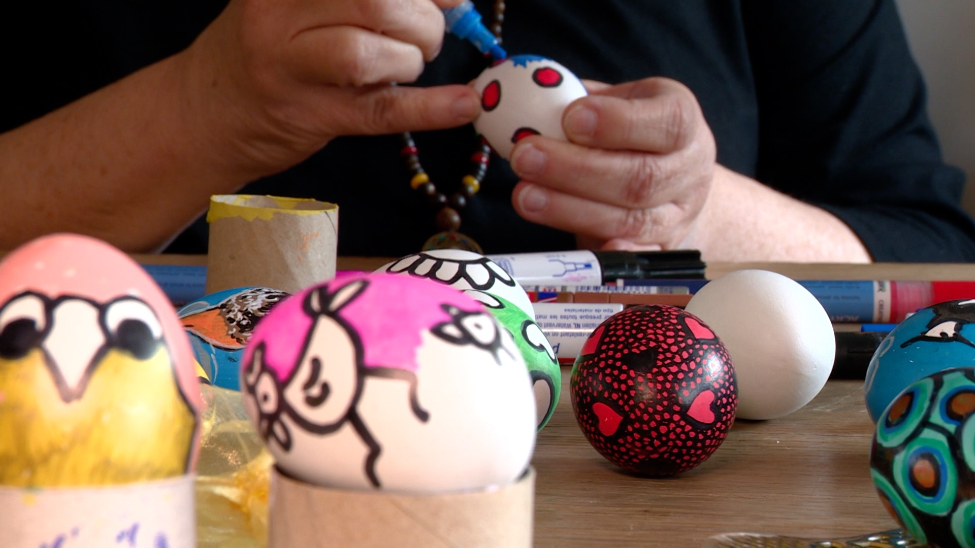 VIDEO: Hetty Combs beschildert 300 paaseieren voor het goede doel: “Ik soe se net opite”