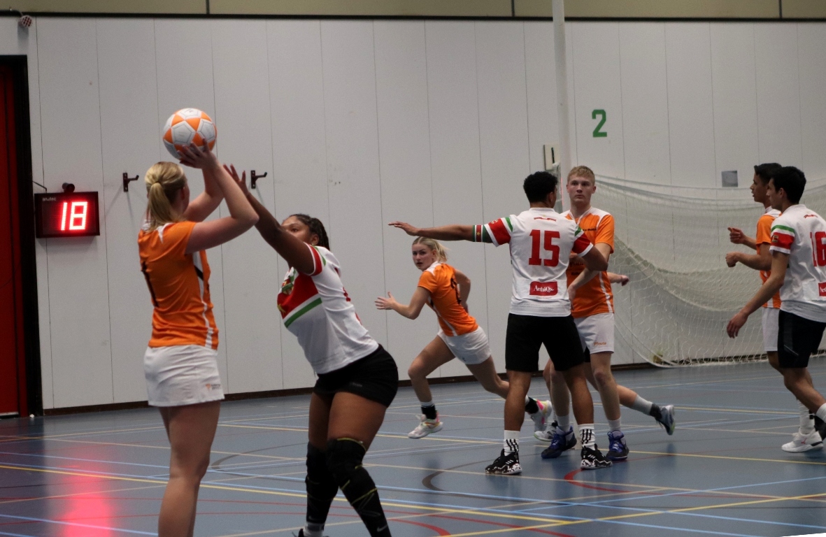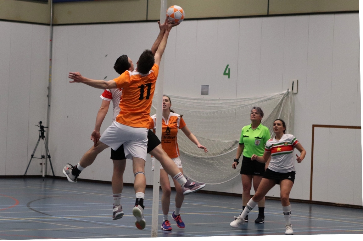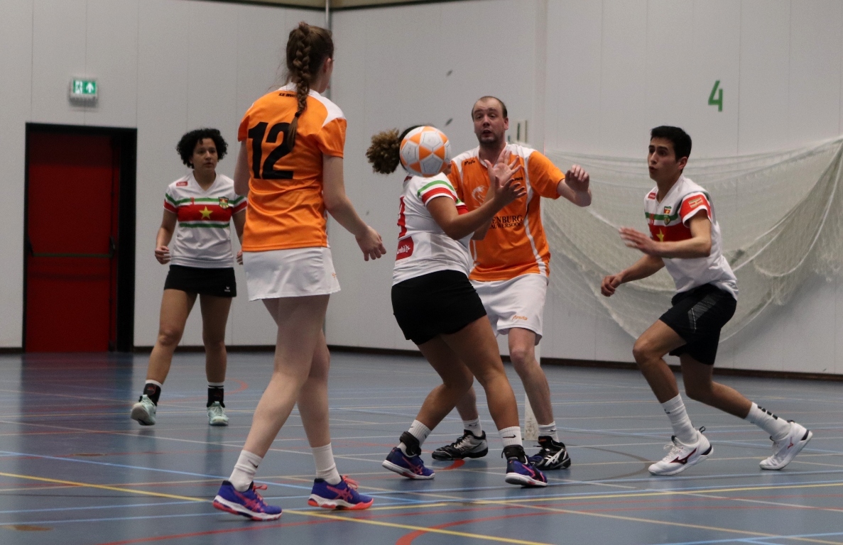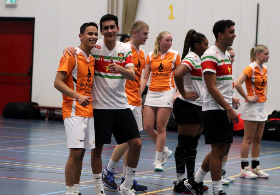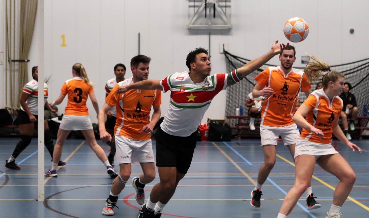 KOLLUM – Afgelopen zondag Eerste Paasdag stond voor de Pruttelpotformatie een bijzondere wedstrijd op het programma. Het WK korfbal is weer in aantocht en daar doet ook Suriname aan mee. Ter voorbereiding spelen zij een aantal oefenwedstrijden in Nederland. Ook Invicta/Frigro mocht het tegen ze opnemen.