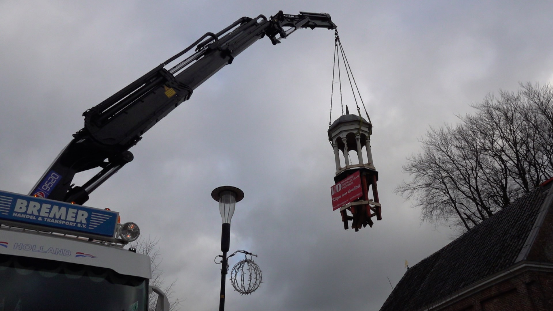 VIDEO: Kerktorentje Surhuisterveen van het dak getakeld