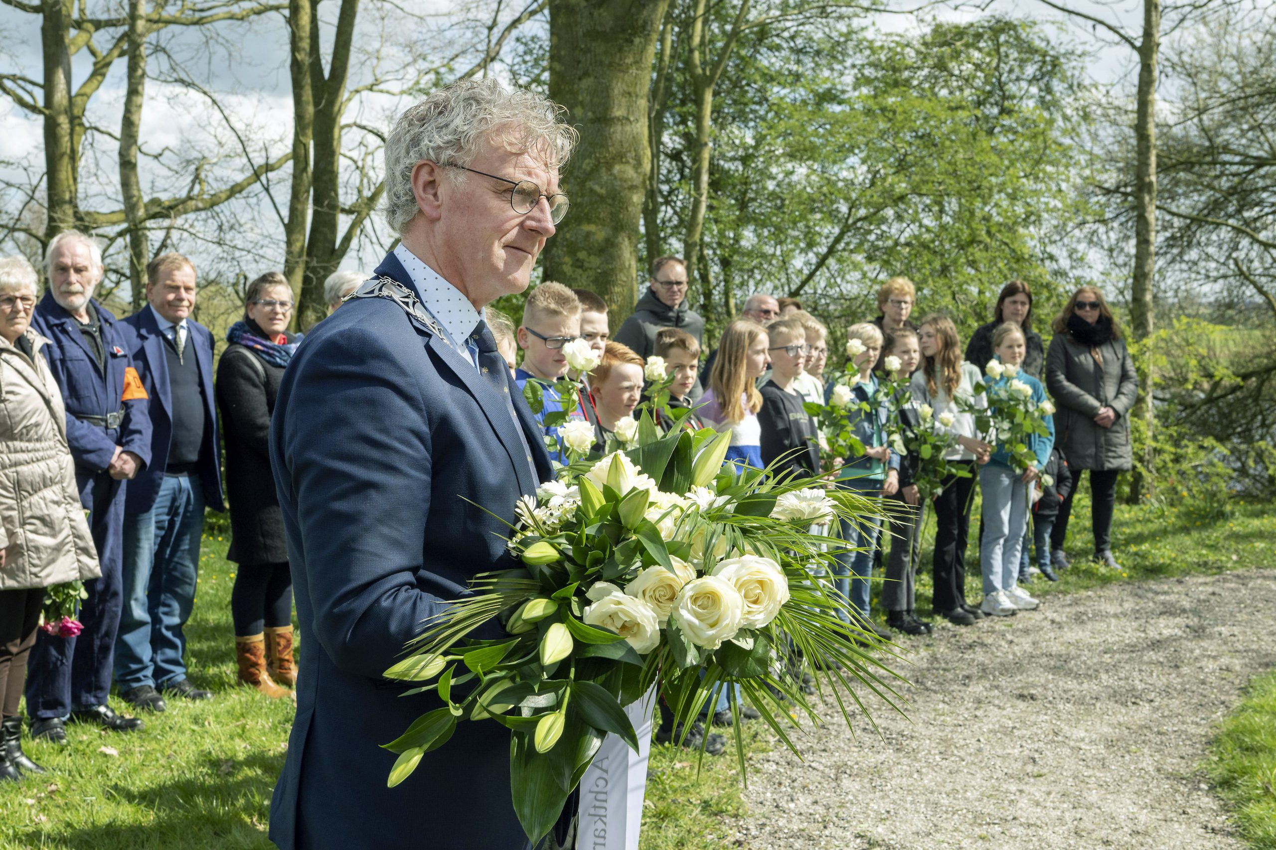 BLAUFORLAET – Vrijdagmiddag legden de leerlingen van de Twa-Ikker uit Augustinusga, samen met burgemeester Oebele Brouwer een krans en bloemen bij het oorlogsmonument van Blauforlaet. Het monument bij het Prinses Margrietkanaal herinnert de inwoners van Blauforlaet aan de gevechtshandelingen tussen leden van de Nederlandse Binnenlandse Strijdkrachten en troepen van de bezetter op 14 april 1945.