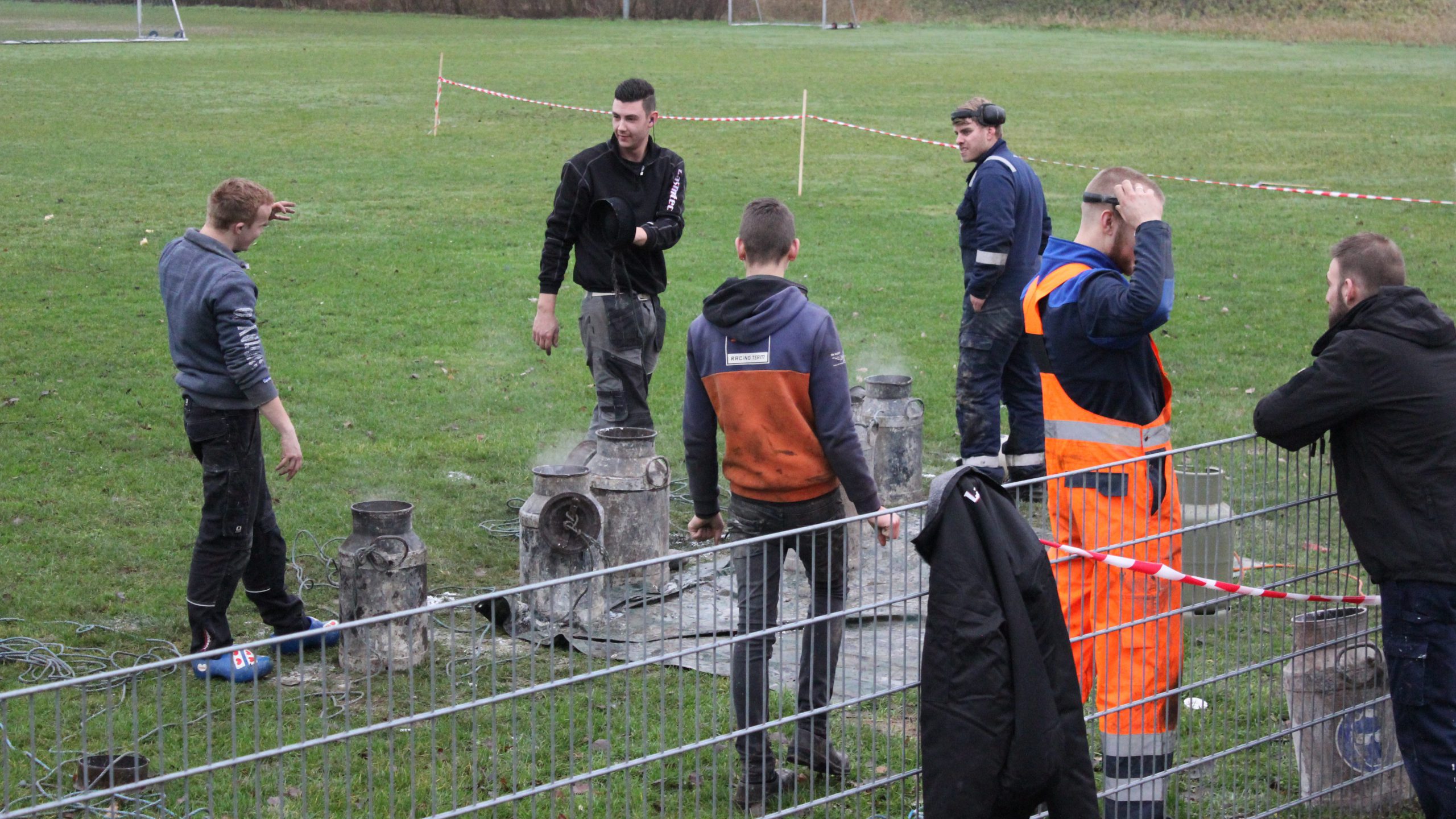 In verschillende dorpen van Dongeradeel werd er op oudejaarsdag weer ouderwets carbid geschoten. Ook in Dokkum was een groepje vrienden verzameld op het Harddraverspark. De ochtend kwam langzaam op gang. Met zeven bussen werd er geknald op het trainingsveld van VV Dokkum. ,,Mei in moai groepke, bin we efkes moai fourt”, aldus Mark Bergsma.
