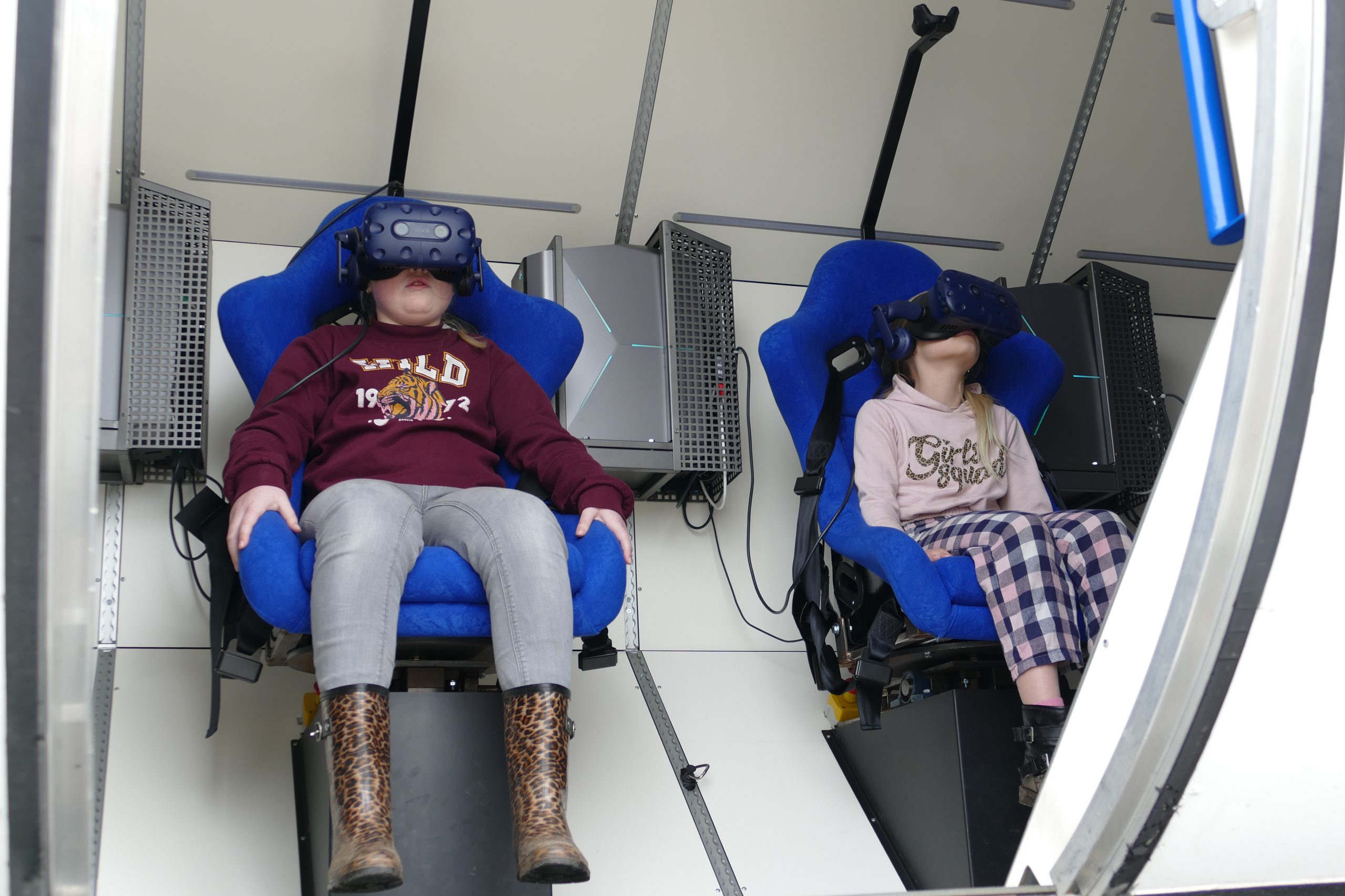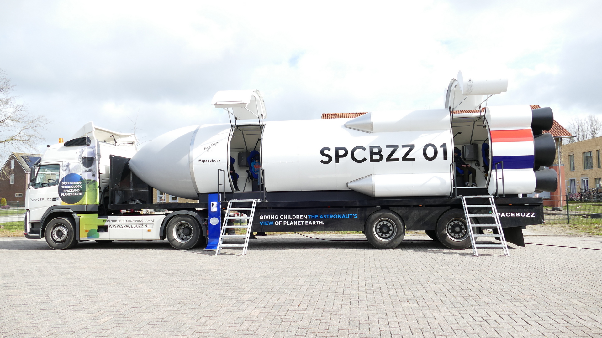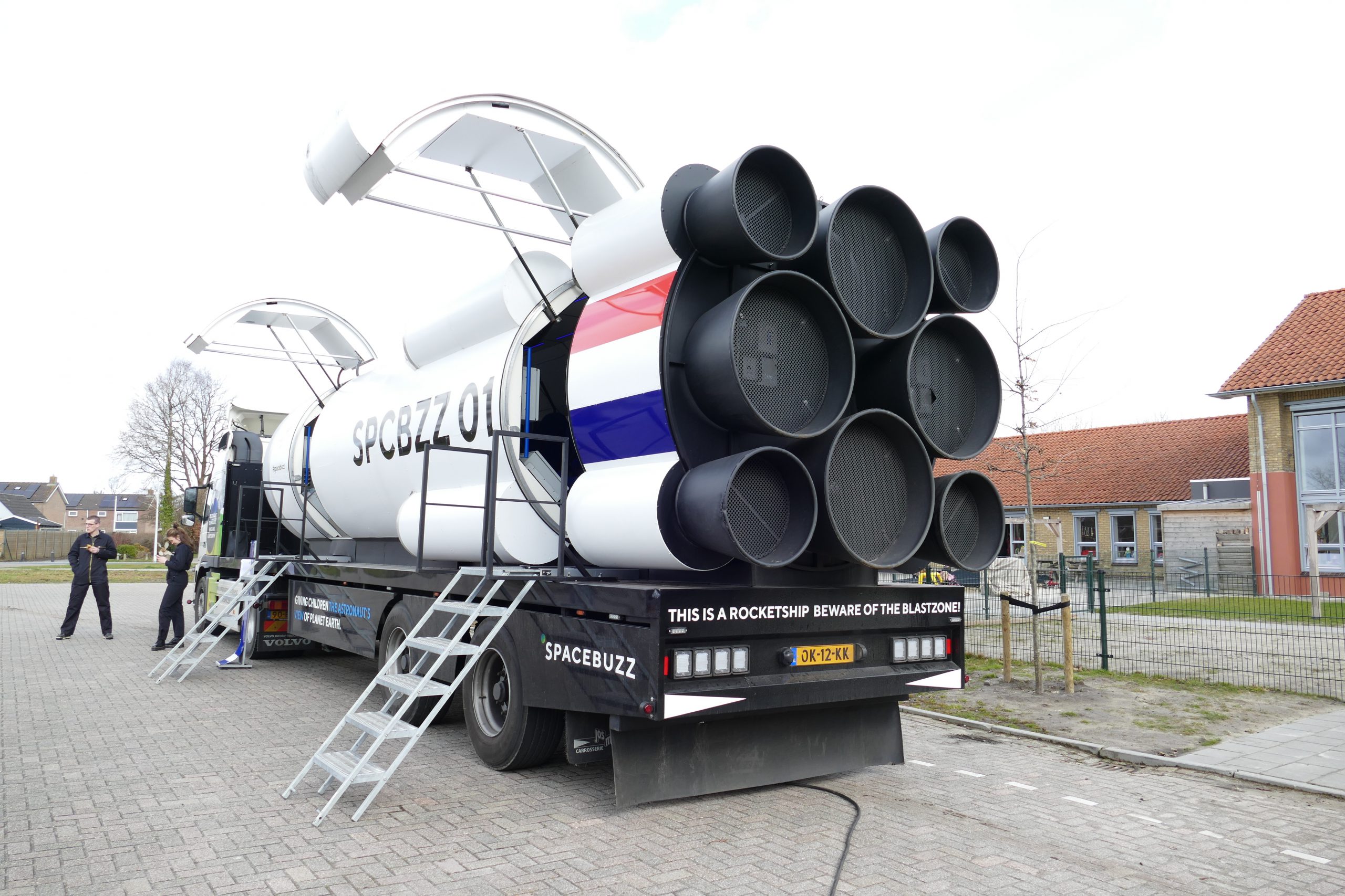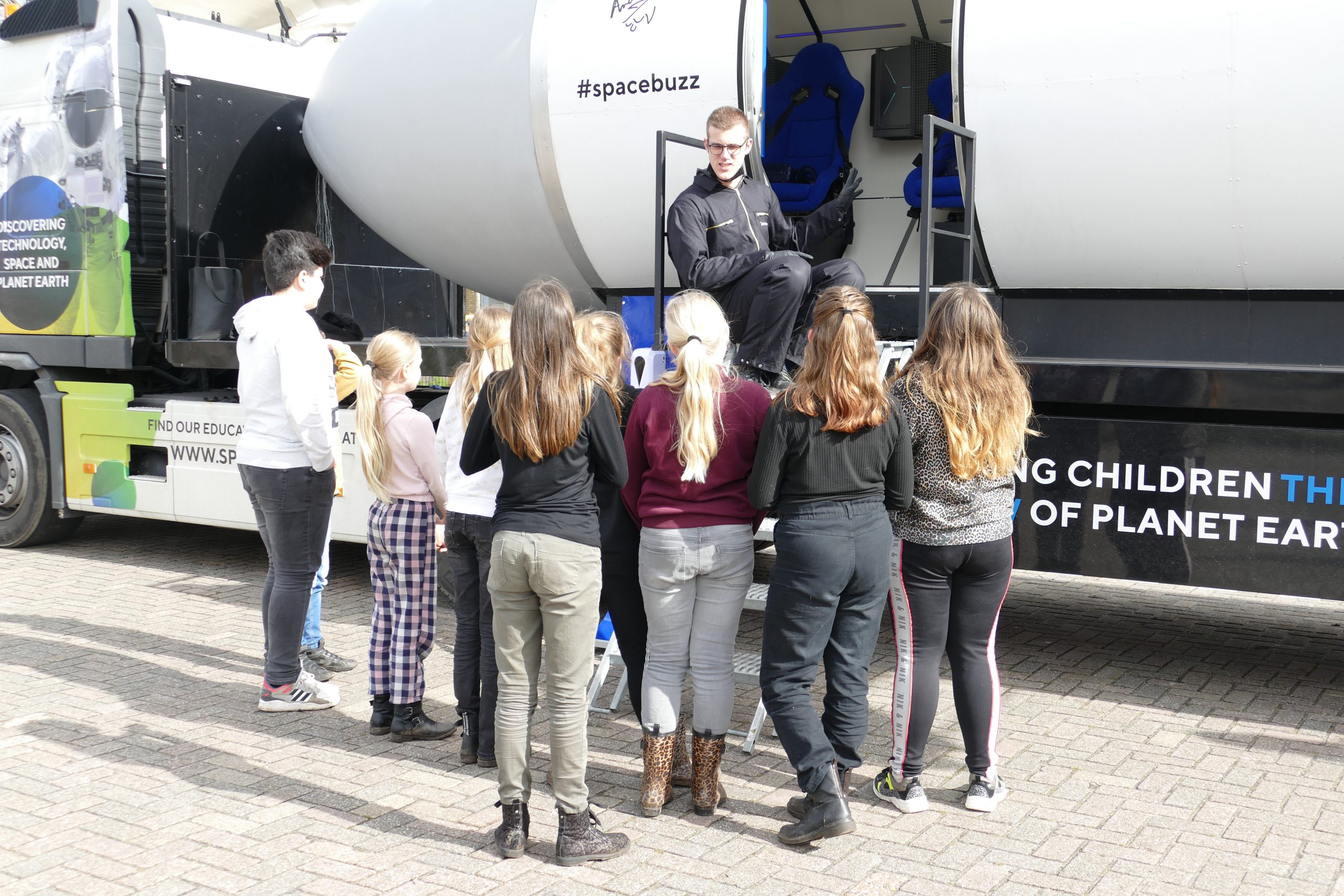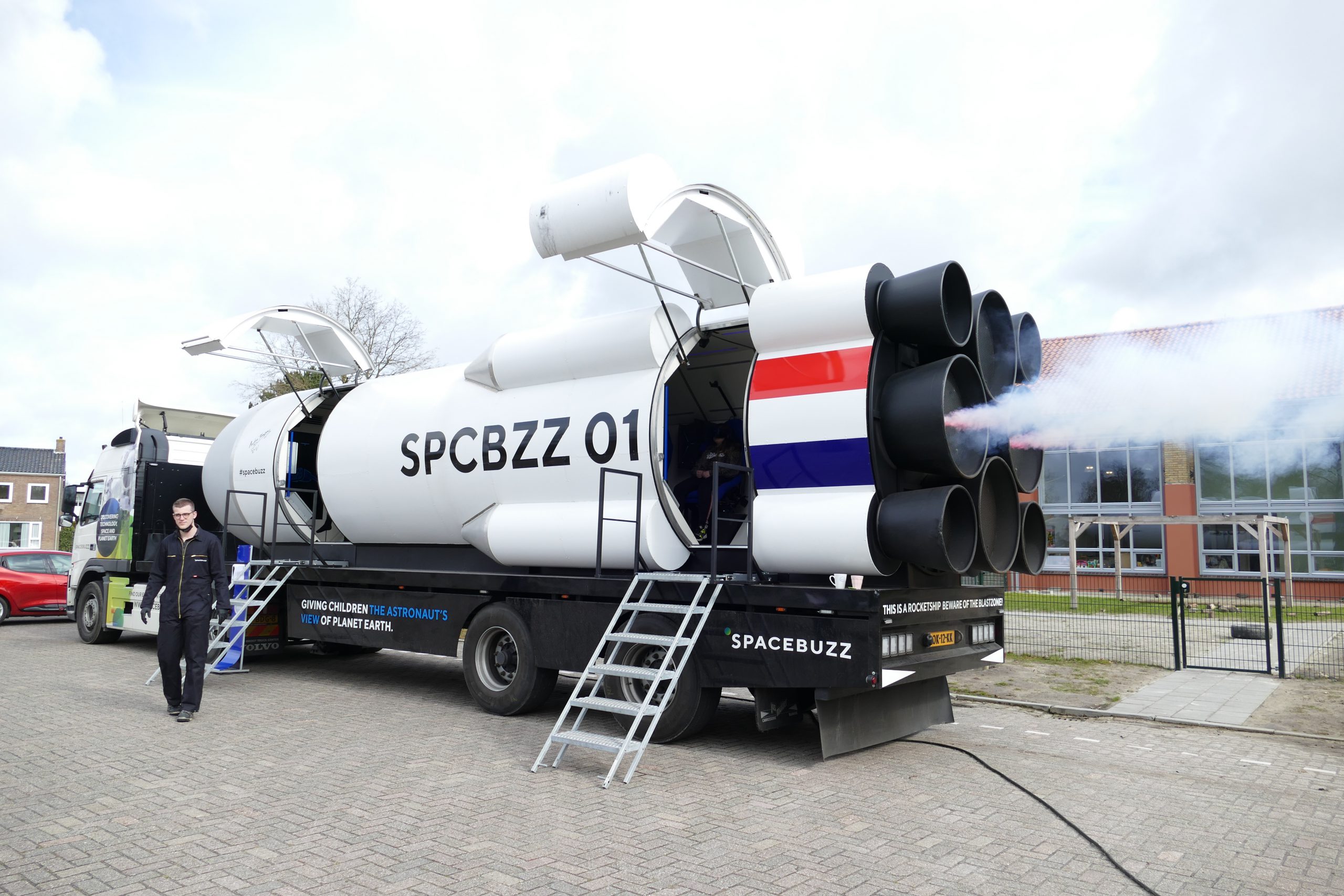 DAMWÂLD – Leerlingen uit groep 6 en 7 van de Dr. J. Botkeskoalle uit Damwâld zijn dinsdag op een ruimtemissie geweest. Op het parkeerterrein bij de Campus in Damwâld stond De Spacebuzz. In dit 15 meter lange raketvoertuig konden de kinderen middels VR-brillen een levensechte ruimtereis maken en de aarde bekijken vanuit het perspectief van een astronaut.