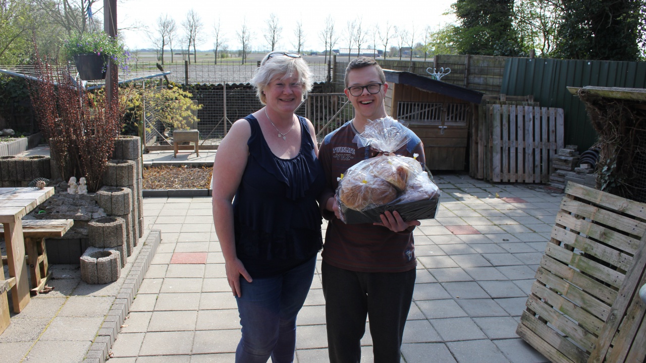 Mickey Tinga uit Waaxens heeft het momenteel erg lastig. Hij heeft het downsyndroom, is hartpatiënt en komt de deur niet meer uit. Alleen een luchtje scheppen in de tuin is nog mogelijk. Contacten moet hij mijden vanwege het besmettingsgevaar van het coronavirus. Hij heeft alleen contact met zijn moeder, zus en zorgverlener en die zijn kinderen. De moeder van Mickey is zondag 12 april jarig. Normaal gesproken koopt hij dan zelf een cadeautje in de stad. Helaas kan dat dit jaar niet. ,,De situatie is erg lastig voor hem. Ik wilde hem een leuke verrassing bezorgen, daarom heb ik hem opgegeven,” vertelt zijn moeder Sjoerdtje. Met de PaasBrunchBox kan het gezin genieten van de heerlijke paasbroodjes.