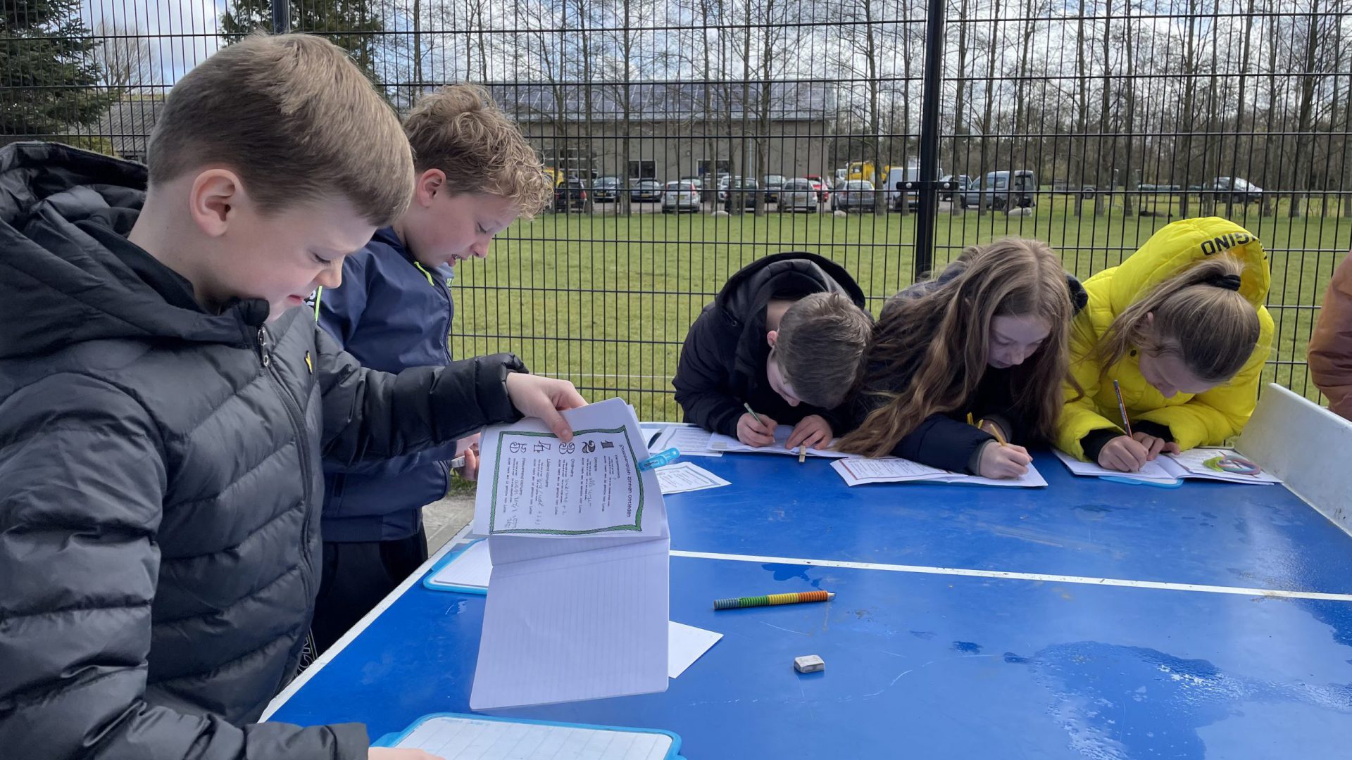 De nationale buitenlesdag bestaat al vijf jaar. “Wij steunen dit van harte”, vertelt Bea Bakker, juf van groep 3 van CBS de Wynroas. De school is veel bezig met lopende projecten “dit doen we voor een gezonde school.” Niet alleen vandaag zijn ze buiten de lokalen te vinden, de school probeert zoveel tijdens de lessen een hoop opdrachten buiten te doen. “De kinderen worden hier veel actiever door.”