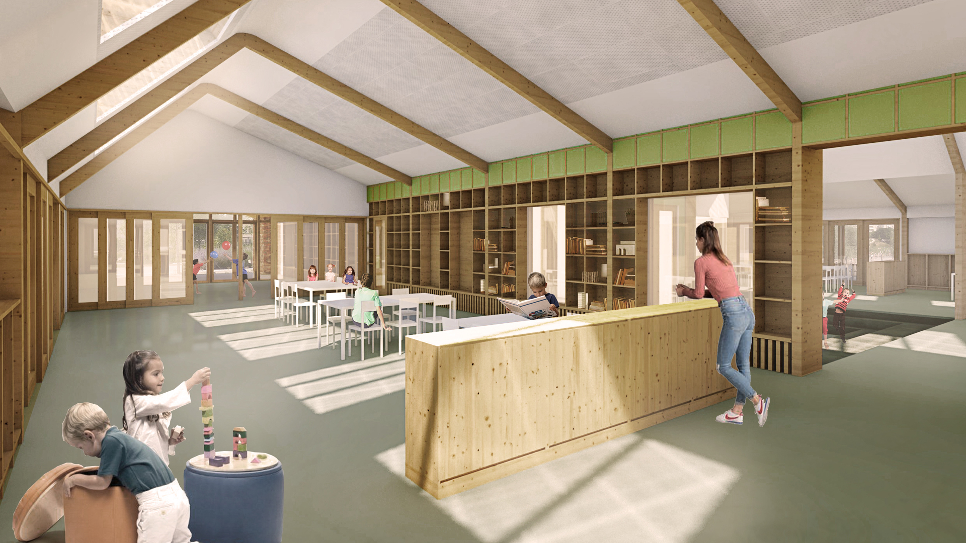 Het ontwerp van de school is gemaakt door architectenbureau KAW uit Groningen. Het nieuwe gebouw kenmerkt zich door vijf herkenbare delen die uit elkaar zijn geschoven. Hierdoor ontstaat er een speels gebouw dat goed in de omgeving en in het dorp past. Door materialen als baksteen, hout en aluminium te gebruiken, past het in het landschap. Het gebouw heeft zonnepanelen en voldoet aan de eisen voor Bijna Energie Neutrale Gebouwen (BENG). In een grote open ruimte in de school kunnen kinderen samen leren en spelen. De lokalen aan de buitenkant geven een eigen rustiger plek. De school staat op dezelfde plek als het huidige gebouw.