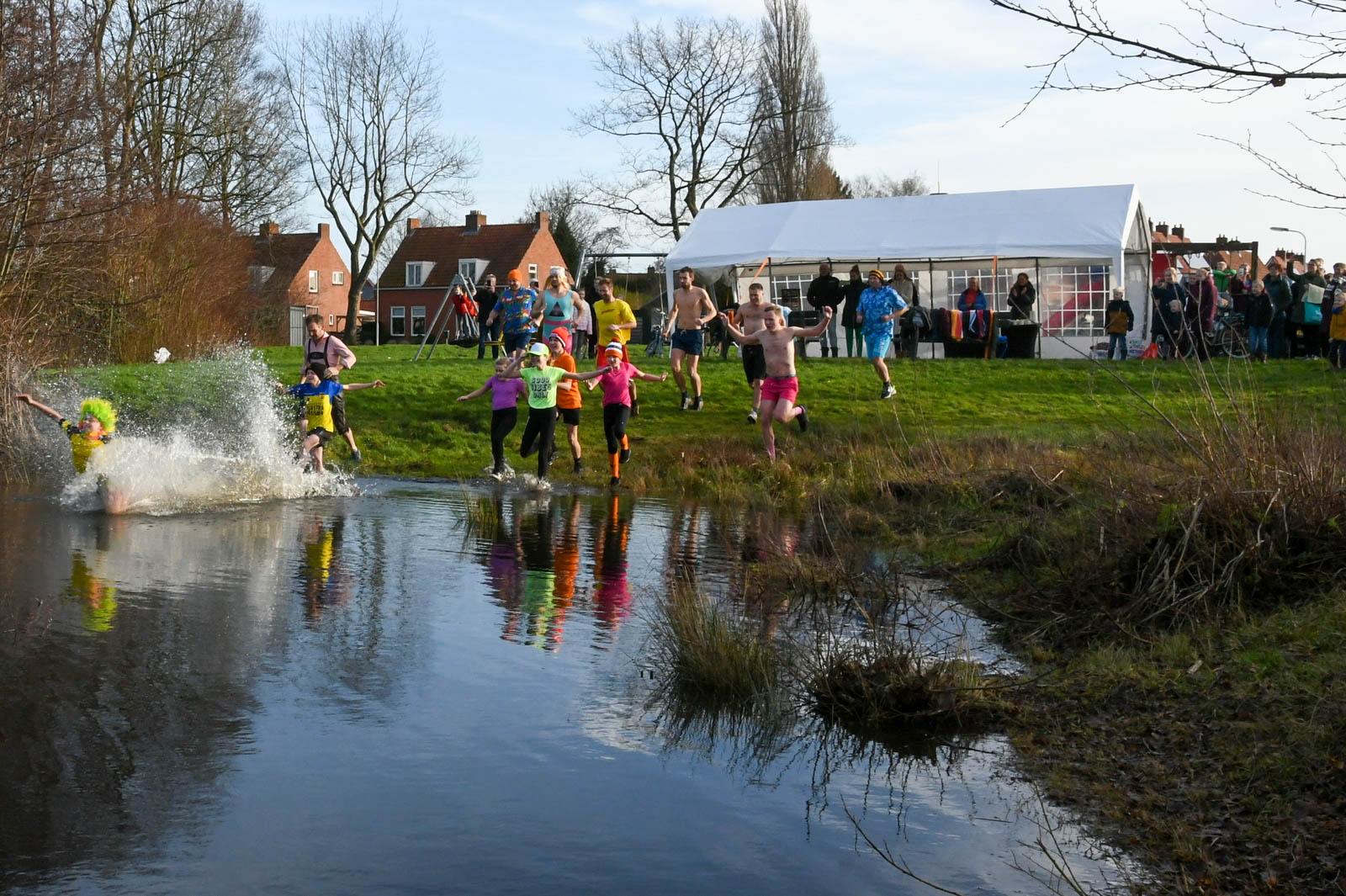 In de vijver van het Cedelshof zagen de vele toeschouwers hoe maar liefst 14 personen, jong en wat ouder het koude water in sprongen. Van te voren was de vijver gecontroleerd door een duiker, zodat het veilig was om de duik te nemen. Daarna was er in een verwarmde tent een heerlijke kop snert voor de deelnemers.