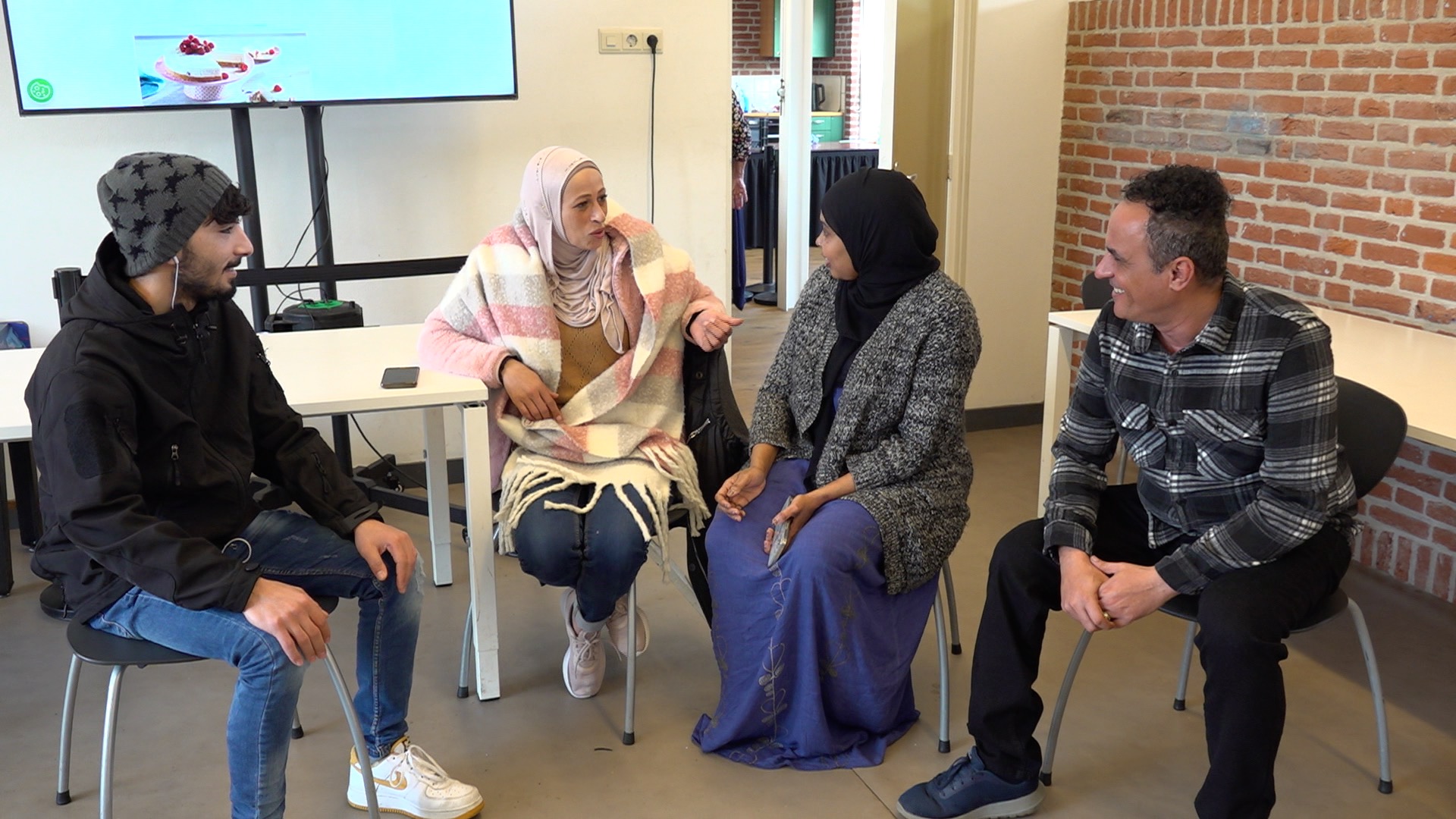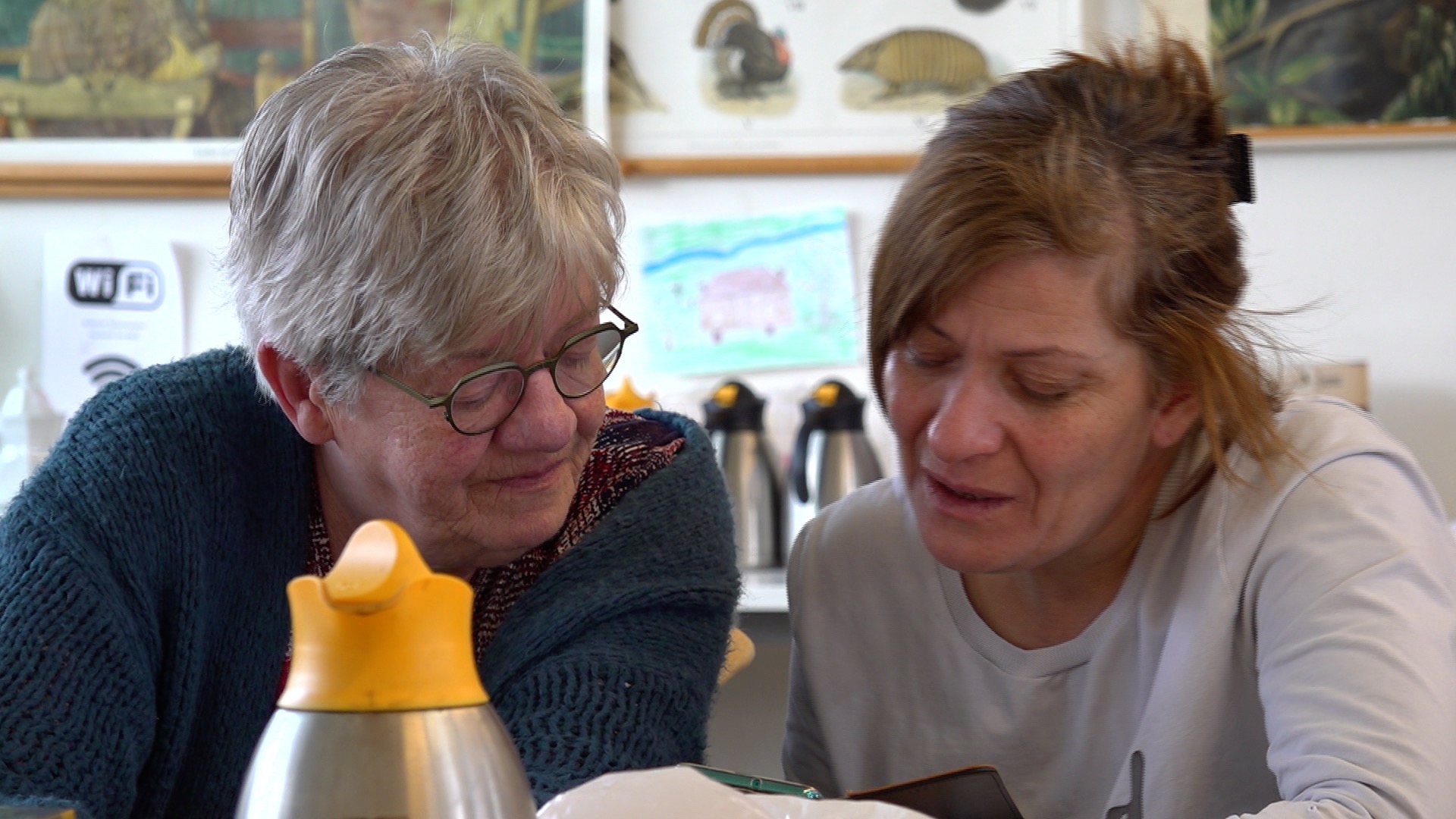 Als Zandberg en haar vriendinnen zitten te breien of kletsen, schuiven dames uit de opvang zo nu en dan aan. “Dan prate wy fia in oersetapp op de telefoan. Wy hawwe aardige kontakten mei harren”, vertelt Zandberg. “Foarige wike kaam der in frou neist my te sitten. Ik frege har om mei te breidzjen. En yntusken hat sy in petsje haakt.”