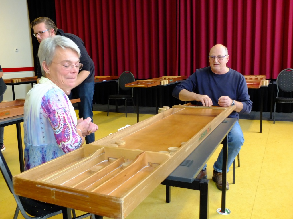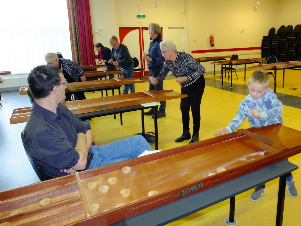 Het waren niet alleen ouderen die zich aan het toernooi waagden. Verheugend is dat er ook jeugd aanwezig was die het sjoelen al aardig onder de knie bleek te hebben.