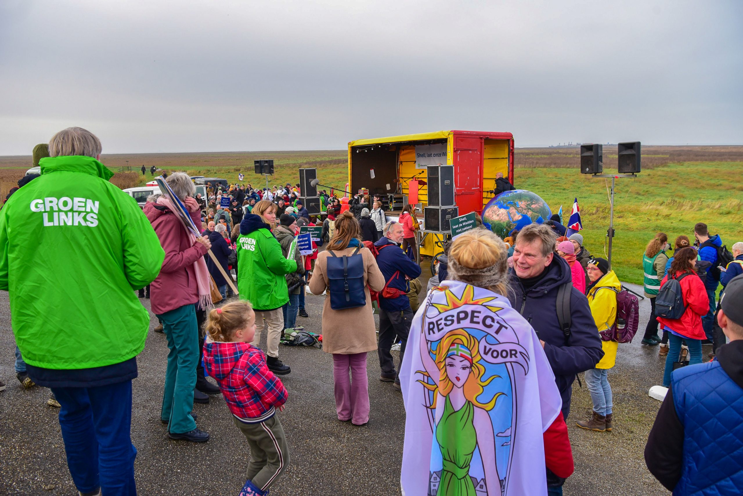 Er waren zo’n 400 actievoerders aanwezig bij het standbeeld van de twee vrouwen van Jan Ketelaar. Die hadden een duidelijke boodschap: “Doe het niet!”
