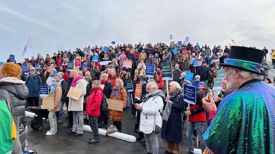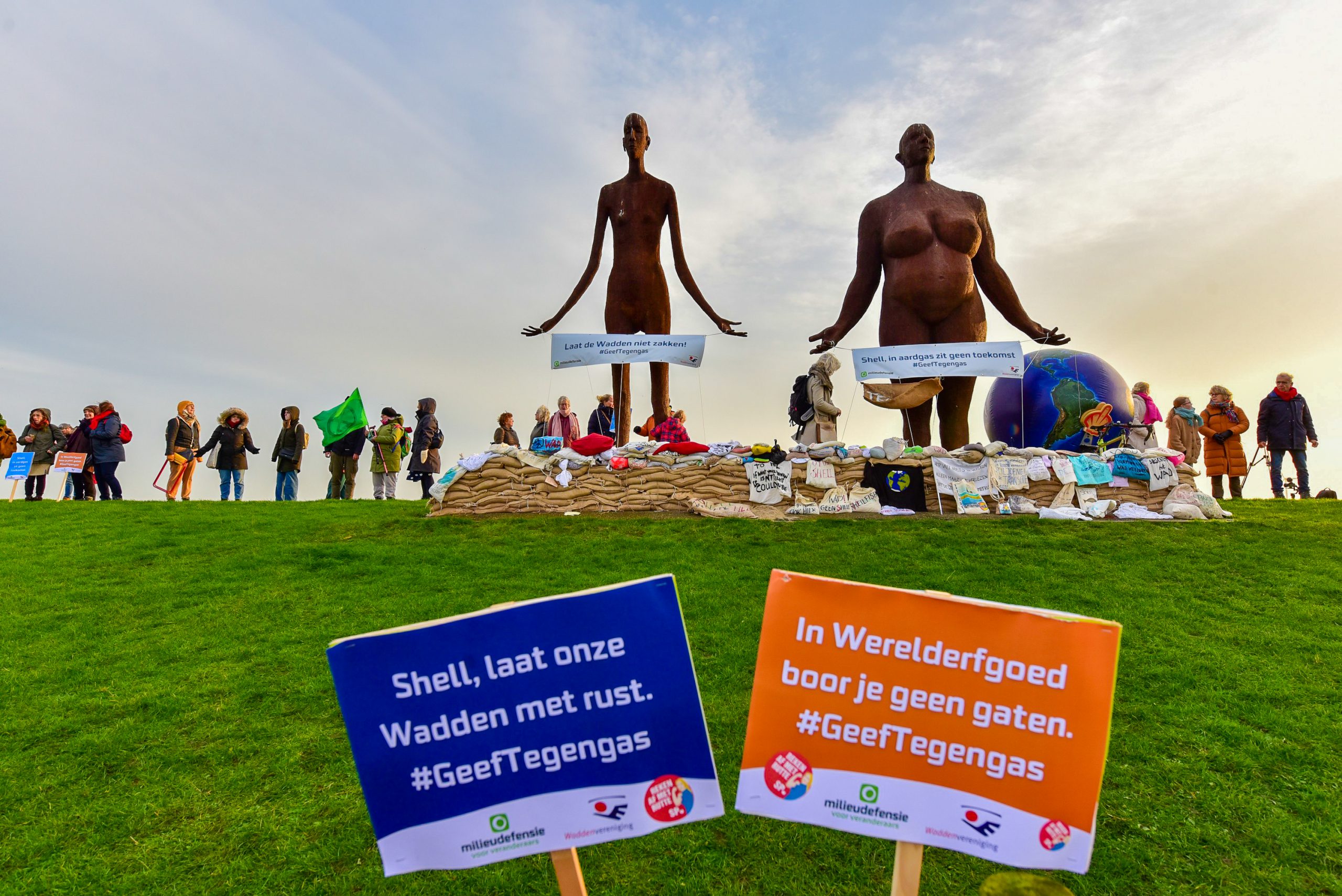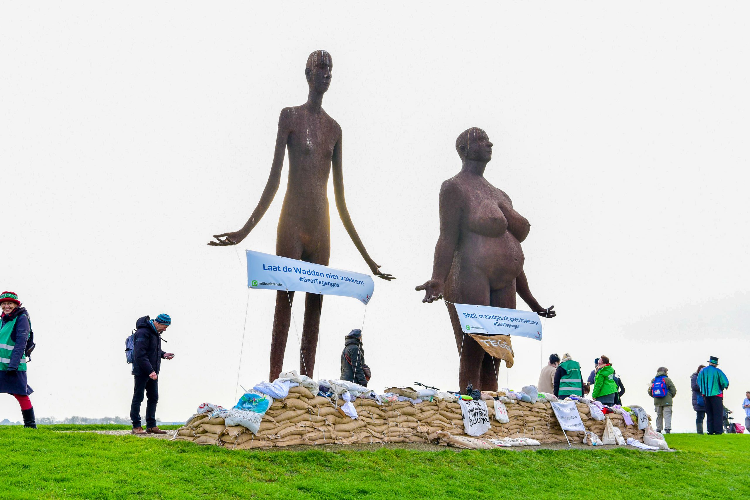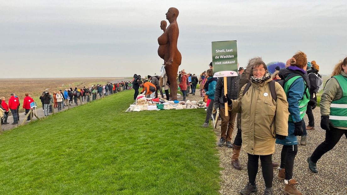 Het ging om een symbolische dijk van een meter. De actievoerders richten zich op Shell, omdat dat bedrijf in afwachting van een vergunning voor nieuwe aardgaswinning onder de Waddenzee is.