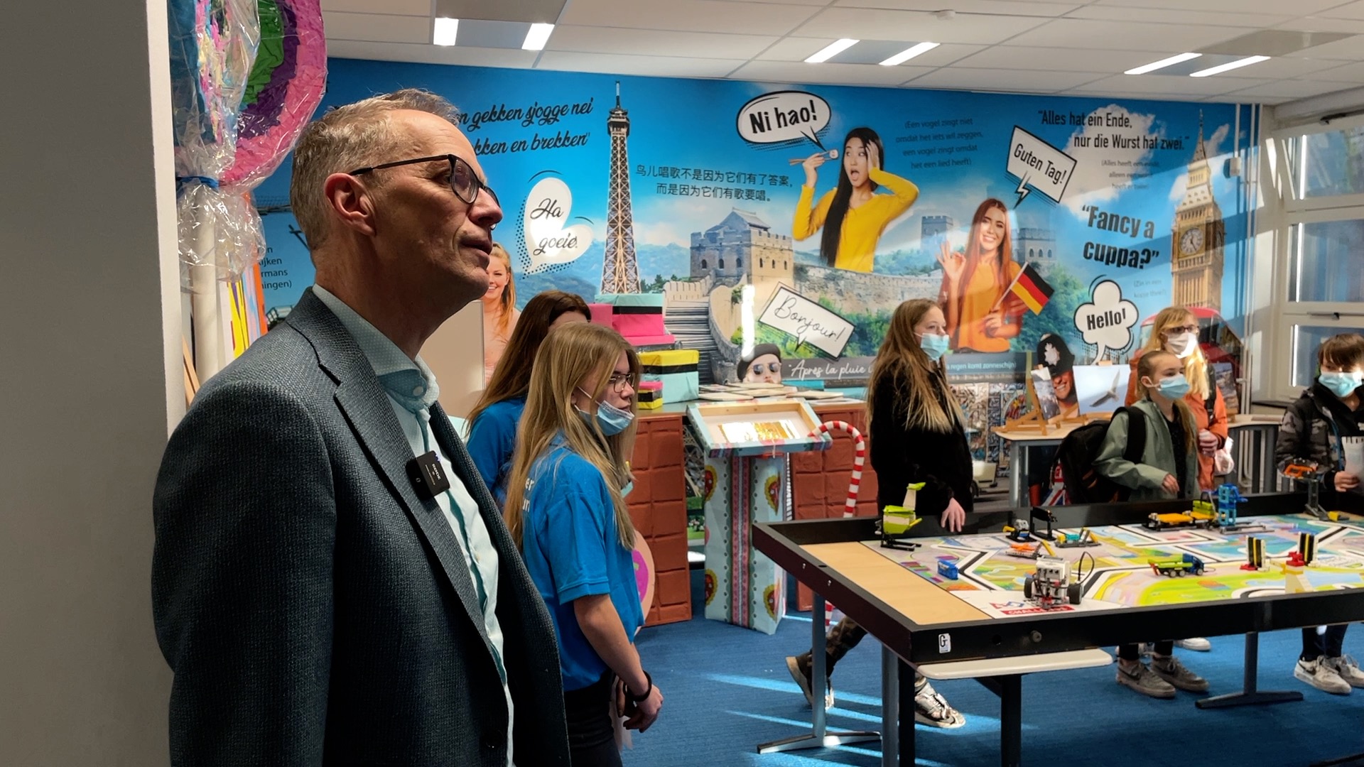 “Wy fine de sfear op ús skoalle altyd hiel belangryk”, zegt Dijkstra. “Dat learlingen en âlden hjir binnen komme en tinke: dit fielt goed. Dat kin allinne mar as je dat fysyk ûnderfine, en net achter in skerm. Gelokkich koe it no ûnder betingsten wol trochgean.”
