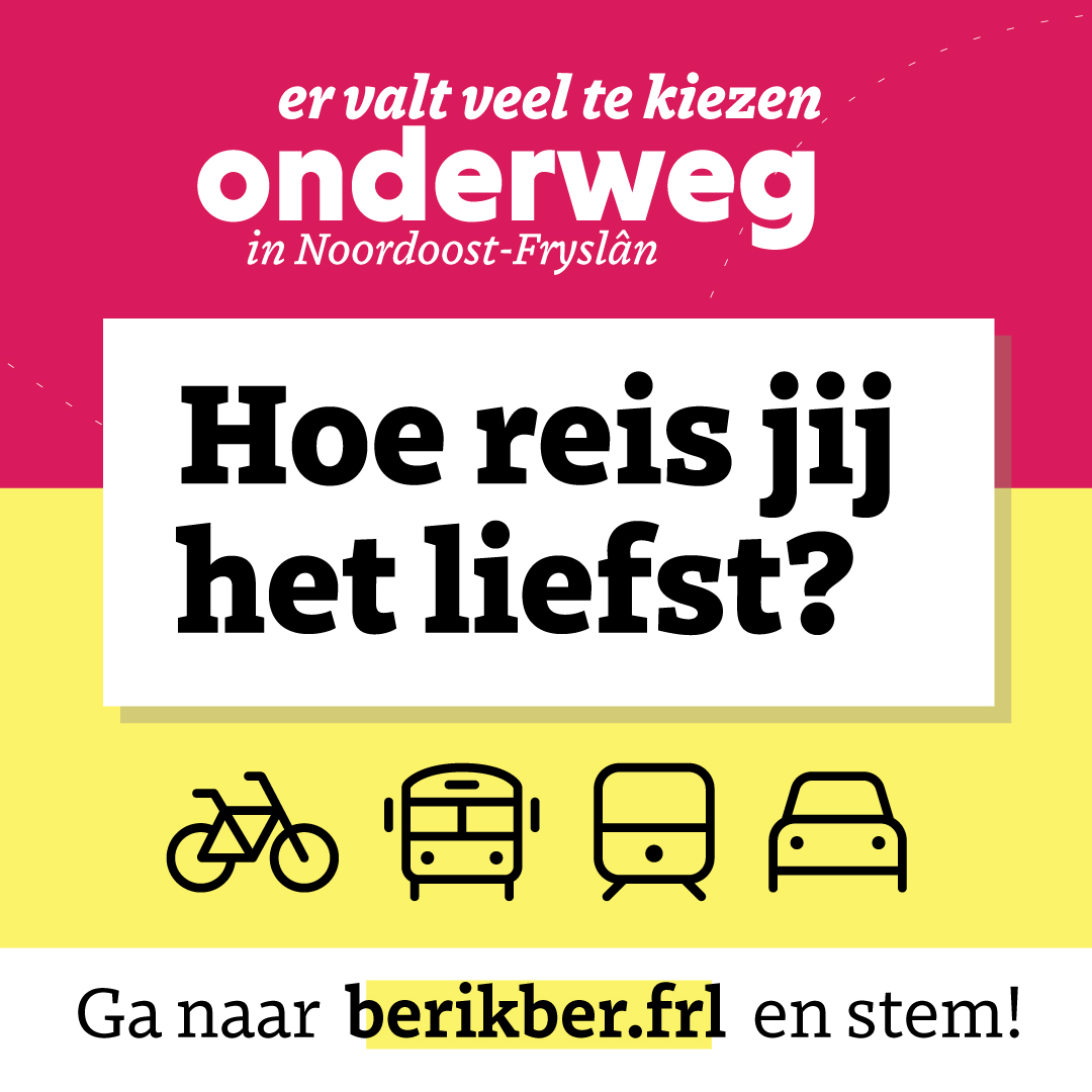 In de campagne staan vier ambassadeurs centraal, inwoners uit de regio. Zij promoten hun favoriete vervoersmiddel: de fiets, bus, trein en auto. Ook krijgen alle inwoners in de vier gemeenten in Noordoost-Fryslân een stemkaart in de bus. Aan de verkiezingscampagne is een winactie verbonden met als prijs een e-bike.