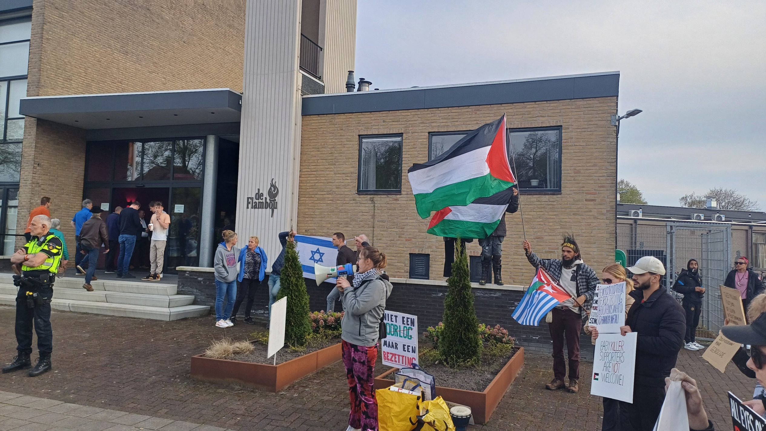 SURHUISTERVEEN – Vier pro-Palestijnse demonstranten hebben vrijdagavond een bijeenkomst met de Israëlische spreker Hananya Naftali verstoord. De Flambou in Surhuisterveen opende zijn deuren voor een optreden van de Israëlische spreker Hananya Naftali. Naftali, die werkzaam is in het mediateam van de Israëlische premier Benjamin Netanyahu, staat bekend om zijn pro-Israëlische standpunten en zijn online activisme ter ondersteuning van Israël en het Joodse volk. De actiegroep Friesland For Palestine stond met ongeveer twintig mensen bij de ingang van het gebouw te demonstreren.