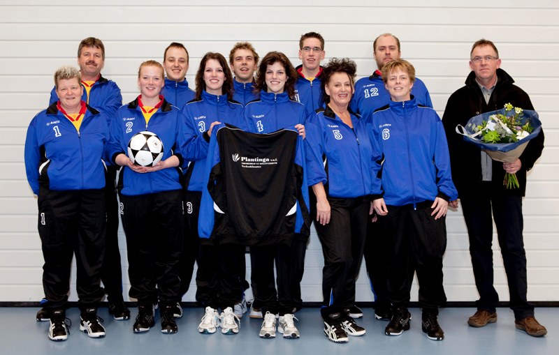 Op zaterdag 26 februari vond de presentatie plaats van de nieuwe trainingspakken van het vierde seniorenteam van korfbalvereniging Flamingo’s uit Buitenpost. De pakken zijn gesponsord door Piet en Jan Peter de Vries van Loonbedrijf Plantinga uit Gerkesklooster en geleverd door V&B Sport en Mode uit Buitenpost.