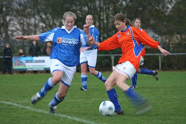 Beide teams keken met spanning deze wedstrijd tegemoet. Maar naar 6 minuten was de wedstrijd van alle spanning ontdaan. Eerst was het Jildou Brouwer die keepster Esther Veenstra verraste met een ogenschijnlijk houdbaar afstandsschot. Daarna was het Liesbeth Negerman die vrij eenvoudig het laatste tikje kon geven aan een bal die in een waterplas bleef liggen. VIOD stond er bij en keek er na. Er lukte deze middag bijna niets in het Driezumer kamp. Een pass over tien meter was nog te veel gevraagd. Toch zette VIOD op pure inzet vlak voor rust aan voor een licht offensief. Zo waar kreeg Jettie Elzinga en Linda Visser twee kansen.