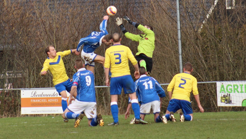 Ook Jelmer Visser komt na een corner een teenlengte tekort om de bal in het lege goal te schieten. Na onnodig balverlies op het middenveld wordt spits Hendriks van Rijperkerk ingespeeld. Deze draait goed weg en loopt zo richting de goal. René van der Veen weet dit in eerste instantie goed te herstellen maar na een kleine duw van beide kanten gaat de spits naar de grond, en constateert de scheidstrechter een penalty. Een zware beslissing. Hendriks benut dit buitenkansje en schiet Rijperkerk in de 29e minuut tegen de verhouding in op voorsprong. Niet veel later komt Rijperkerk op een 0-2 voorsprong.