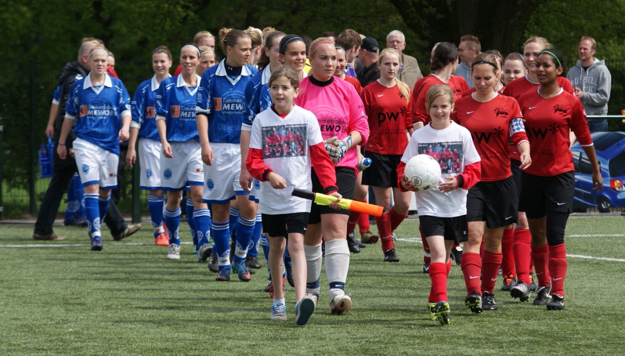 Niemand gaf in de rust nog een cent voor de kansen van VDZ. VIOD was in de eerste helft heer en meester en speelde met uitzondering van de eerste tien minuten geconcentreerd en fel en creëerde vele kansen. Een doelpunt bleef dan ook niet uit. In de tiende minuut stuurde Grytsje Jongsma met een uitstekende pass Elissa Halbesma de diepte in. Zij sneed naar binnen en liet keepster Woutske Hartholt met links kansloos. Vijf minuten voor rust veroverde Linda Visser in het strafschopgebied van VDZ de bal en tikte deze terug naar Froukje Schaafsma, die Joukje Smeding in stelling bracht. De Oudwoudster ramde de bal op weergaloze en tot haar eigen verbazing in de kruising (0-2).