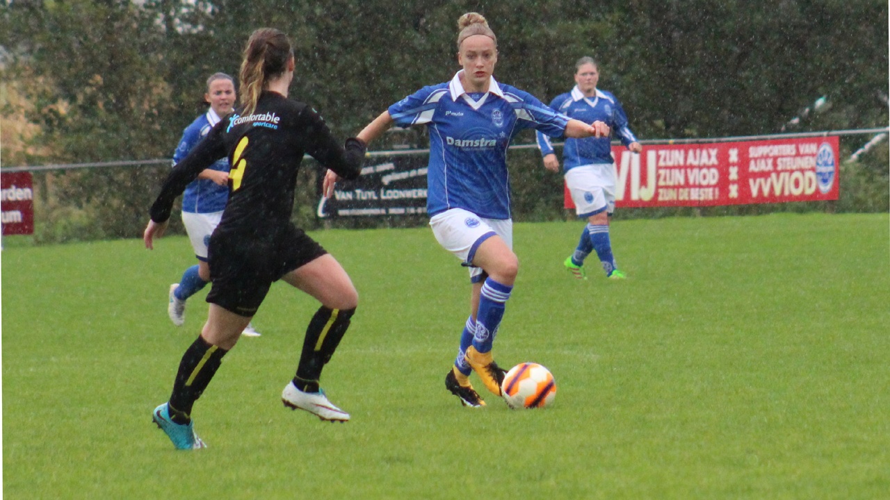 Het slechte weer kon gelukkig niet als metafoor worden gebruikt voor het spel van VIOD. De Driezumers speelden met name in de eerste helft hallucinant goed. Coach Freddy Bollegraaf vond het zelfs de beste helft die hij ooit van zijn speelsters had gezien. VIOD won overtuigend met 4-0 van Reiger Boys en nestelt zich al na twee wedstrijden in de subtop.