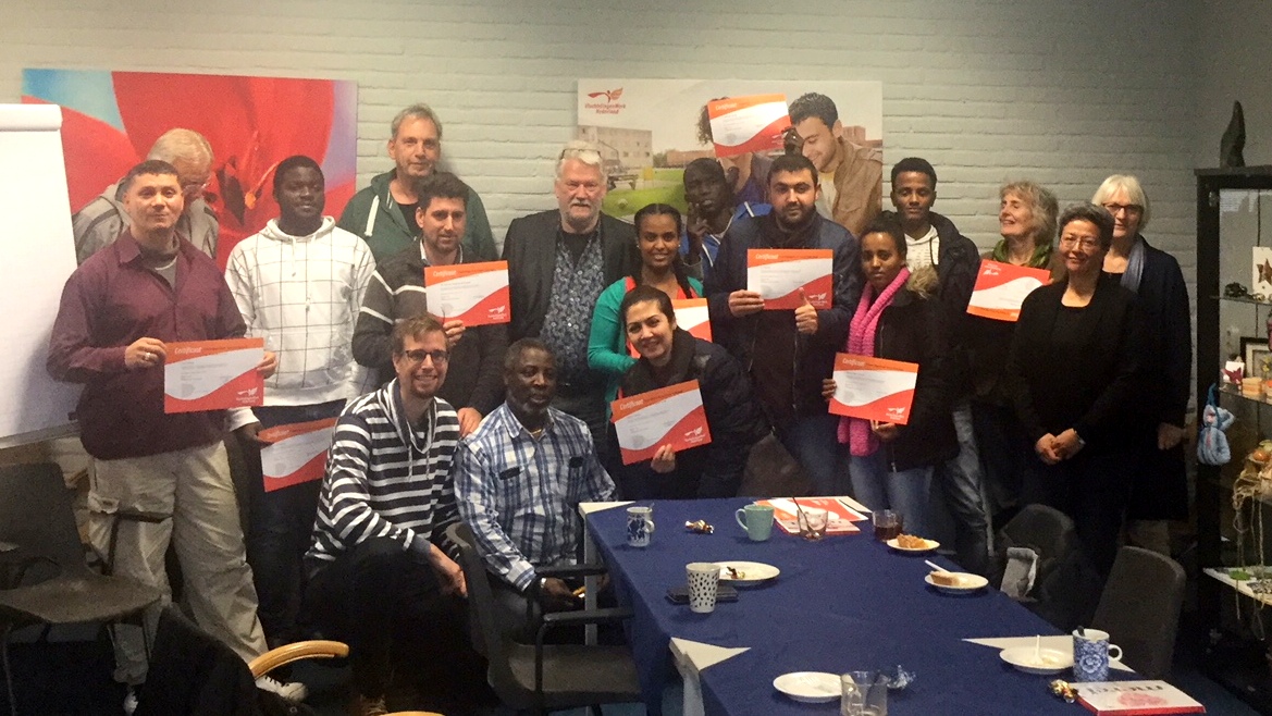 Als beloning voor hun deelname en inzet ontvingen de vergunninghouders woensdag 22 november het VIP-certificaat uit handen van wethouder Pieter Braaksma namens DDFK-gemeenten. Aan het trainingsprogramma deden dit keer 11 vergunninghouders mee die al langer een uitkering van de gemeente ontvangen en (nog) niet een regulier traject naar werk bij NEF kunnen volgen. De cursisten komen uit landen als Eritrea, Syrië en Soedan. 1 deelnemer heeft inmiddels werk gevonden bij Fortuyn, anderen lopen stage bij een metaalbedrijf of zetten zich als vrijwilliger in bij een peuterspeelzaal.