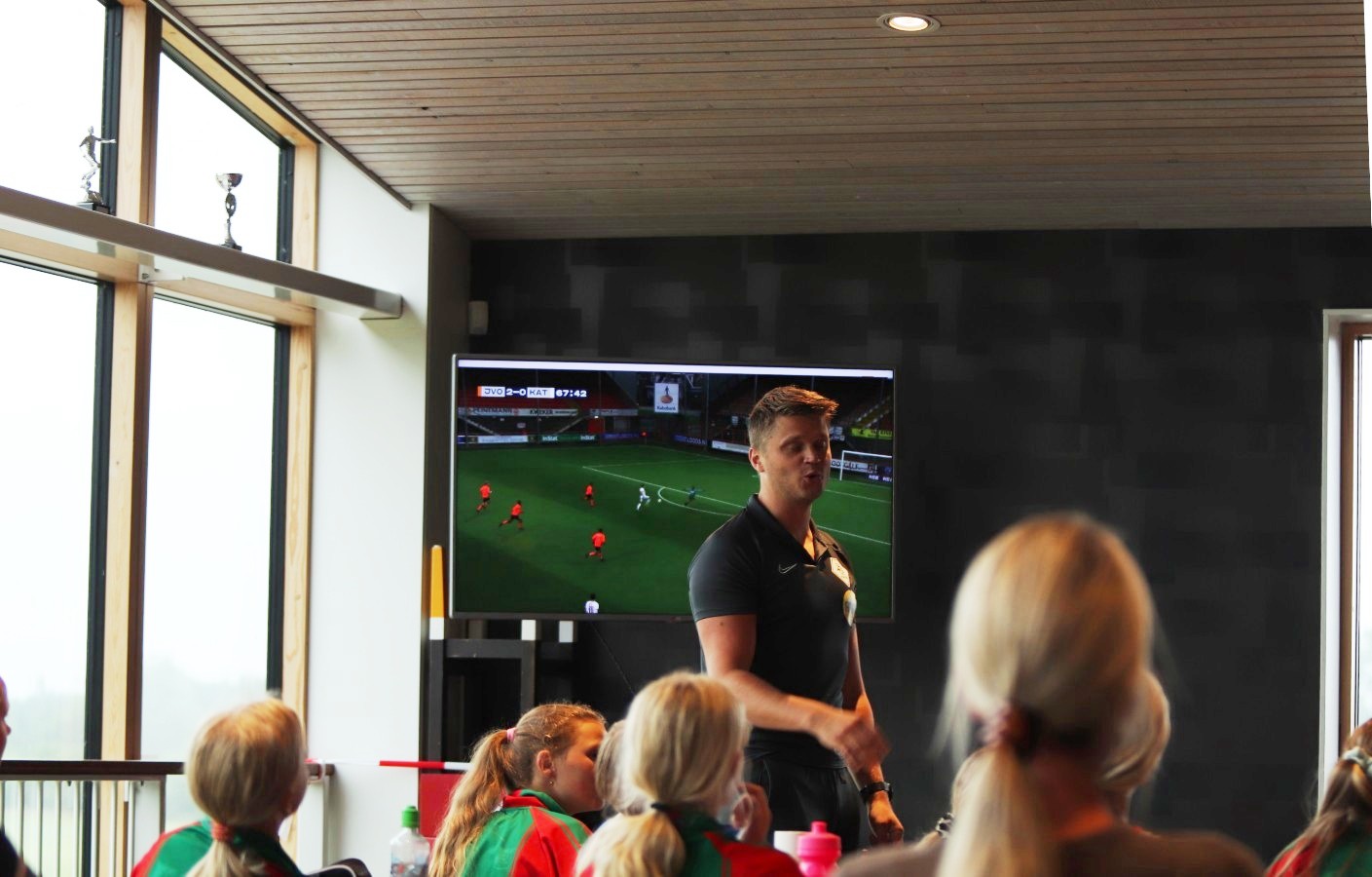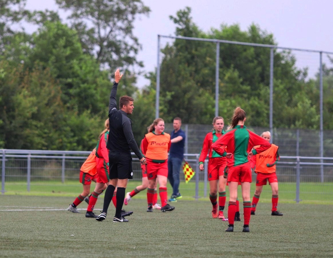 Na de uitleg was het tijd voor een wedstrijd. Eerst beide teams tegen elkaar en na de rust door elkaar. Ook tijdens de wedstrijd gaf Jesse nog duidelijk uitleg over bepaalde regels, en stelde vragen aan de meiden. Vanavond was een wedstrijd met alleen maar winnaars.