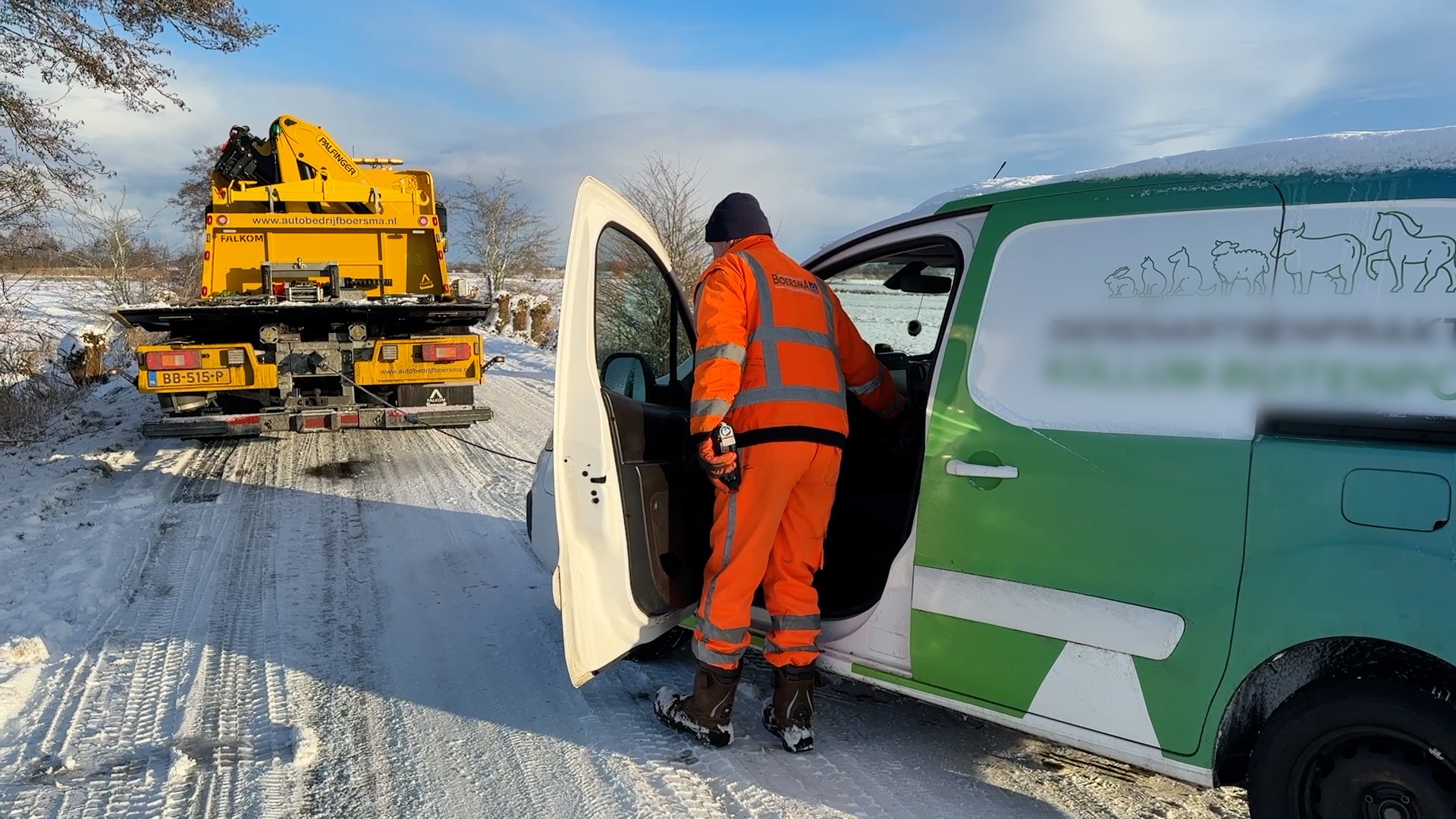 “It is drok, it is echt oanpoatsjen”, vertelt Kees Boersma van het bergingsbedrijf. Door de gladheid glijden veel auto’s van de weg, maar ook door de aanhoudende vorst komen automobilisten met een lege accu te staan. Met man en macht wordt er gewerkt. “Soms moatte minsken wat langer wachtsje, want weinen dy’t gefaarlik steane, gean foar”, aldus Boersma.