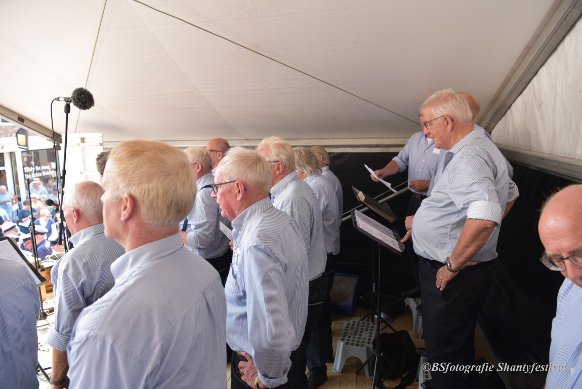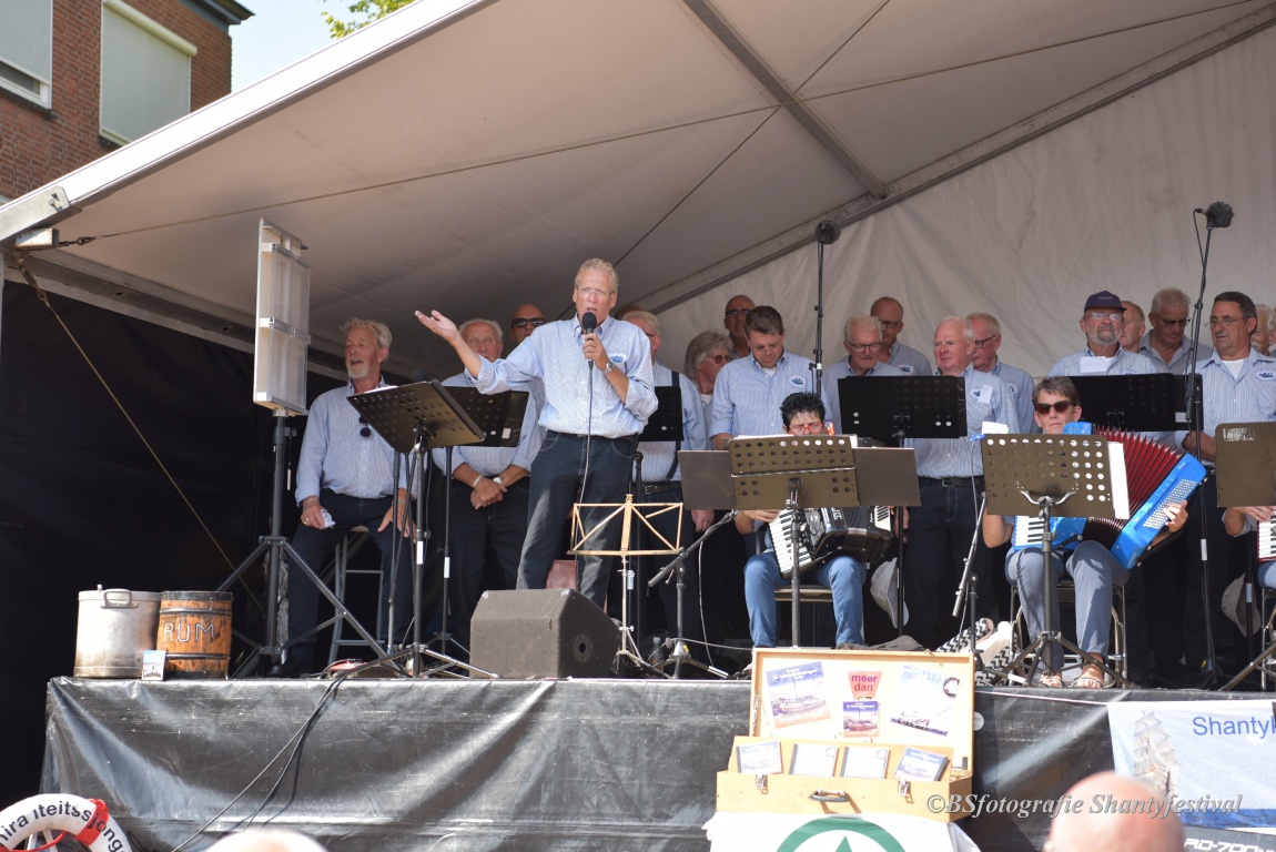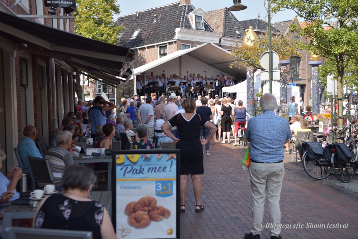 Vanaf het podium op de kop van de Grote Breedstraat in het centrum van Dokkum waren er twee gast shantykoren. Dit jaar waren dat het “Zeemanskoor Lauwersoog”, Shantykoor “de Beurtskippers” Surhuisterveen. Het organiseerde Shantykoor “de Admiraliteitssjongers” onder leiding van Ridzert Beetstra waren natuurlijk ook aanwezig. Het Dokkumer shantykoor trok veel publiek aan. Dit evenement op het podium de kop van de Breedstraat kende een mooie middag, terrassen vol en veel enthousiast publiek die luisterden naar de shanty’s.