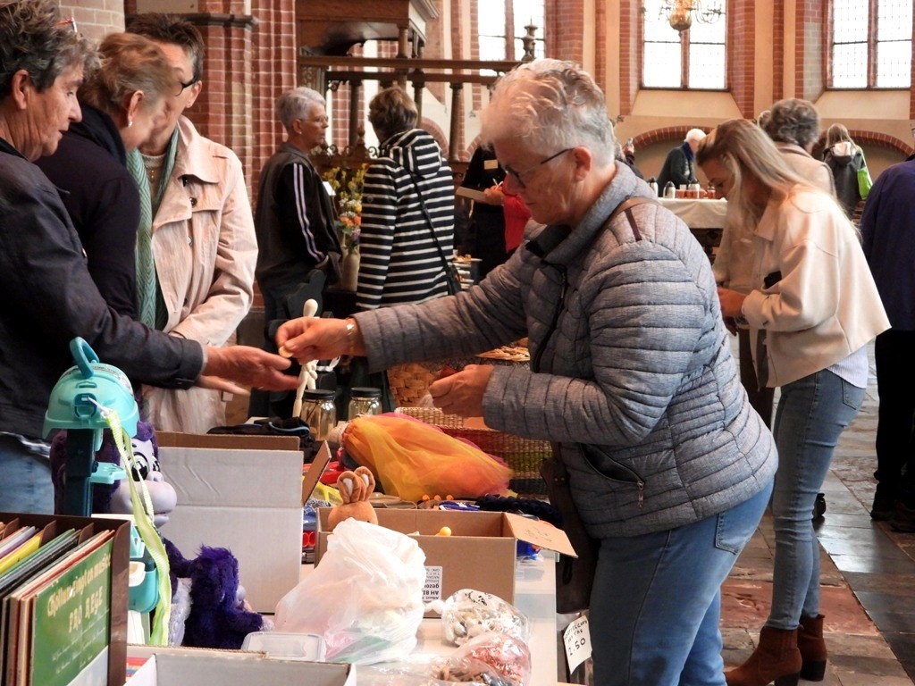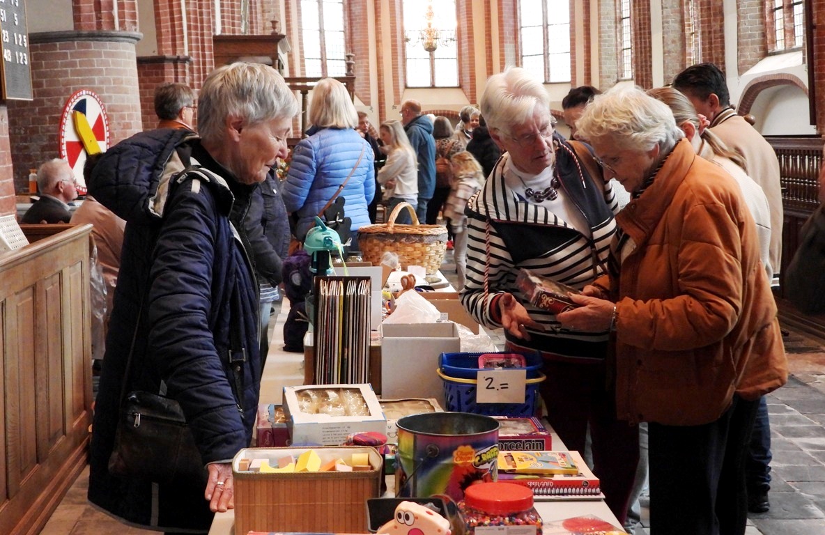 KOLLUM – ‘Samen Sterk’ organiseerde zaterdag voor de laatste keer ‘De Vrolijke Najaarsdag’ van 10.00 tot 14.00 uur in de Maatenskerk in Kollum. Met o.a. de verkoop van bloemstukjes, draaiend rad, demonstratie wol spinnen, verkoop speelgoed en puzzels. Samen Sterk zet zich in voor verschillende projecten binnen de kerk.