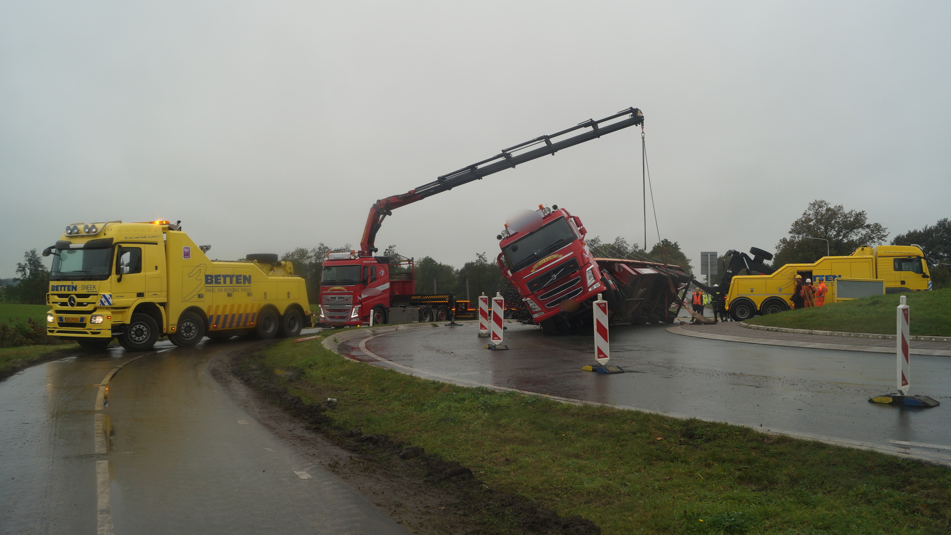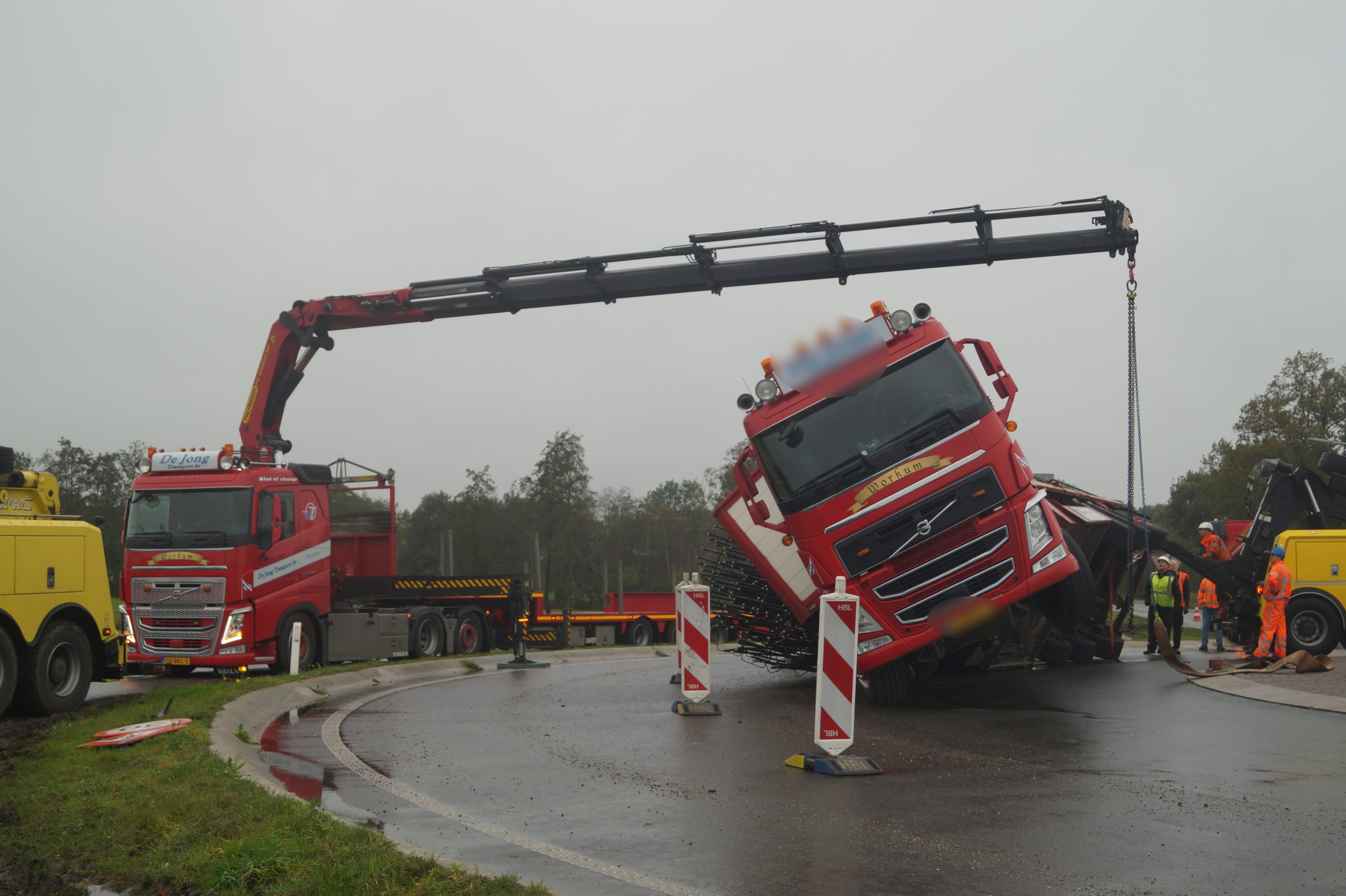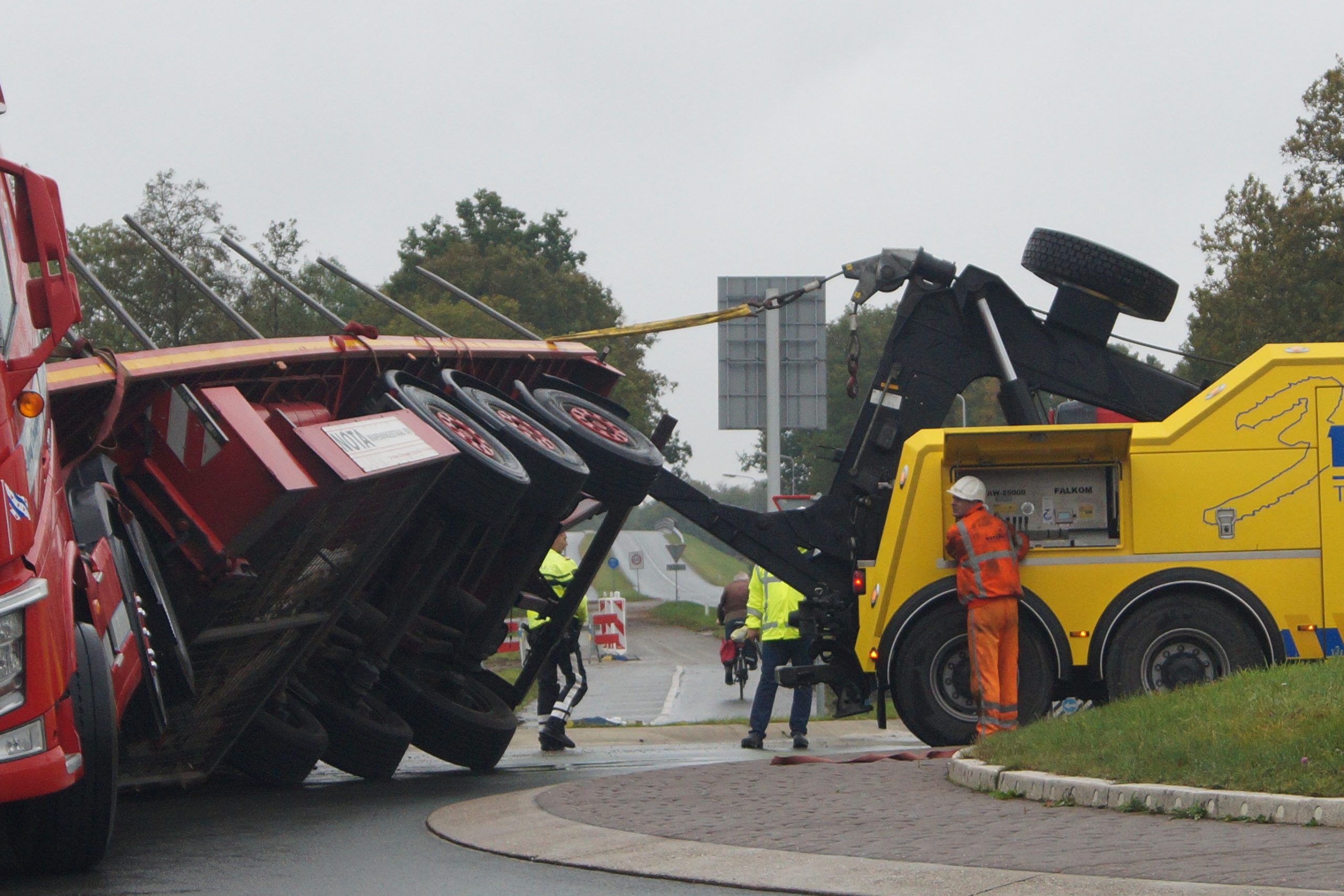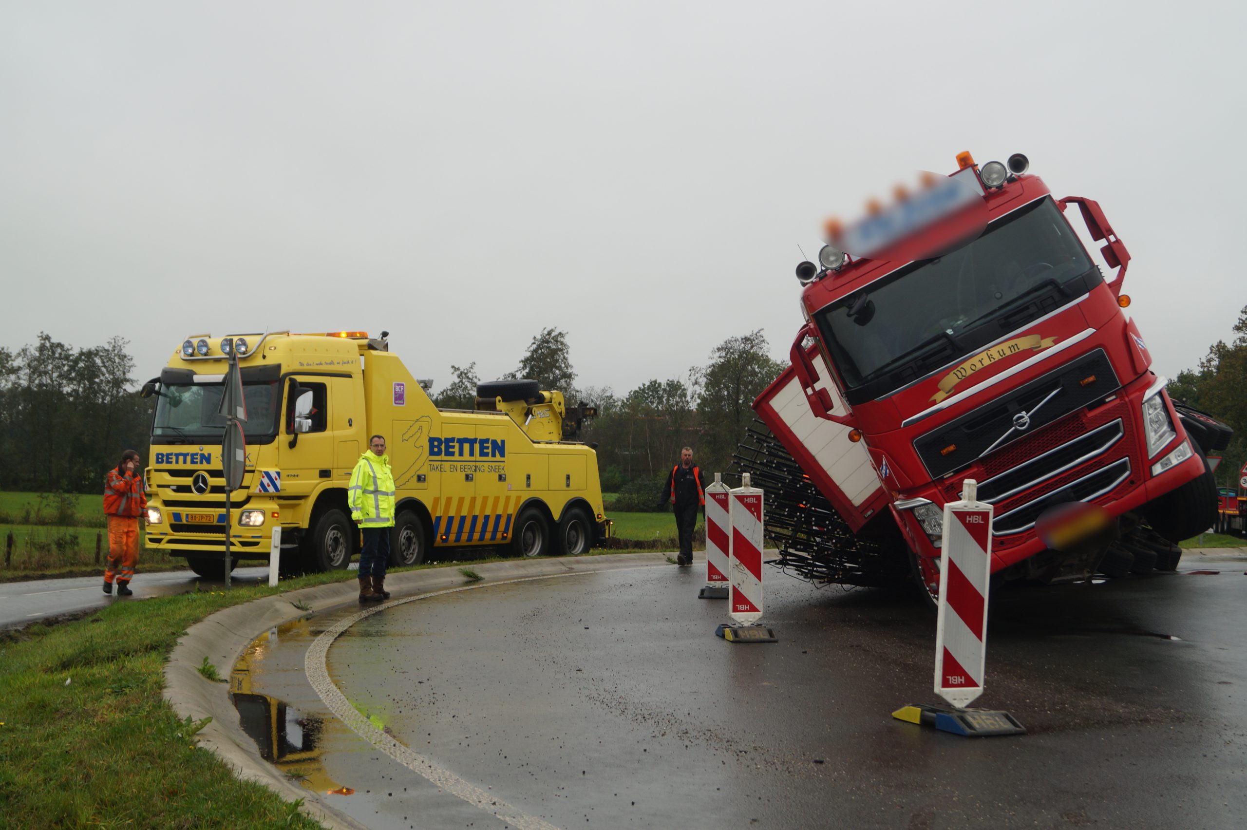 Een bergingsbedrijf is ter plaatse met meerdere vrachtwagens gekomen, de politie en verkeersregelaars hebben het overige verkeer omgeleid. Bij het ongeval raakte niemand gewond. Na meerdere pogingen is uiteindelijk het bergen van de vrachtwagen laat in de middag gelukt.