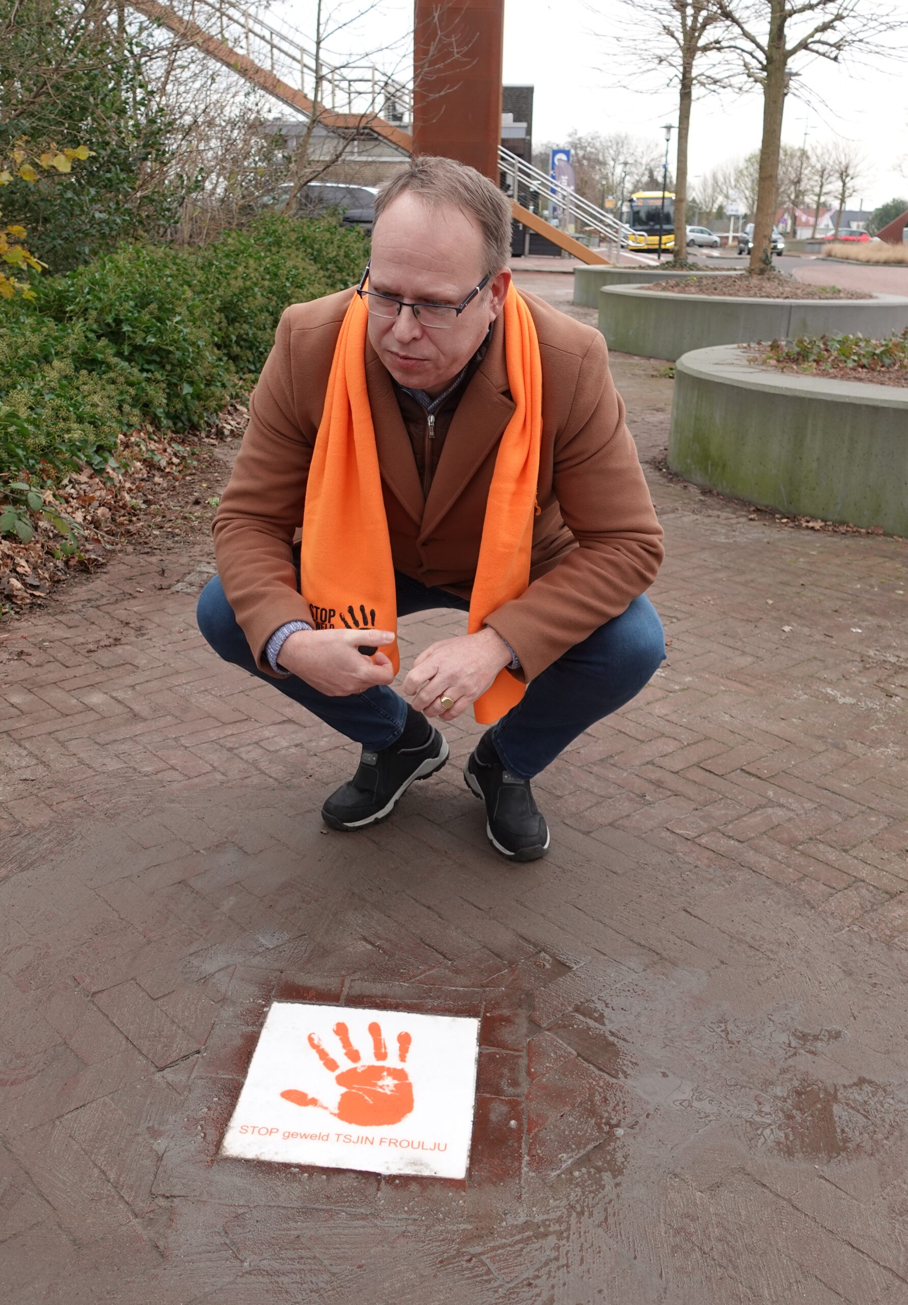 Wethouder Tjibbe Brinkman hield rond het middaguur een korte toespraak. Hij sprak over het belang van bewustwording rondom partnergeweld, en onthulde daarna een speciale tegel tegen vrouwen geweld.