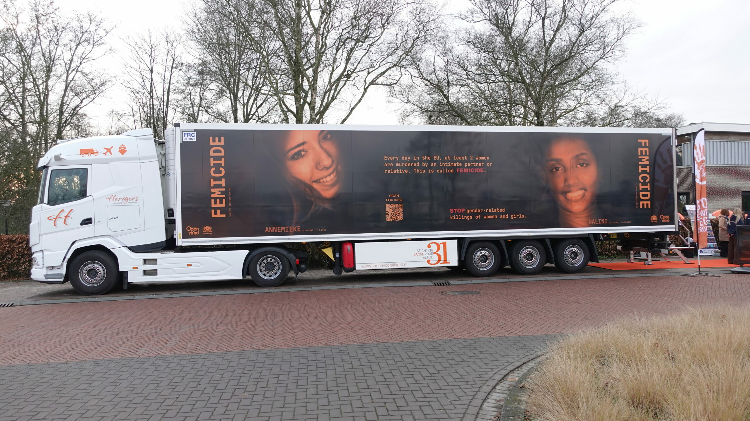 In de mobiele bioscoop draaide de film ‘Het ligt aan mij’, die liet zien hoe een liefdesrelatie langzaam kon veranderen in controle en geweld. De expositie in de vrachtwagen maakte duidelijk hoe groot het probleem van femicide is. In Nederland wordt gemiddeld elke acht dagen een vrouw vermoord, vaak door een (ex-)partner.