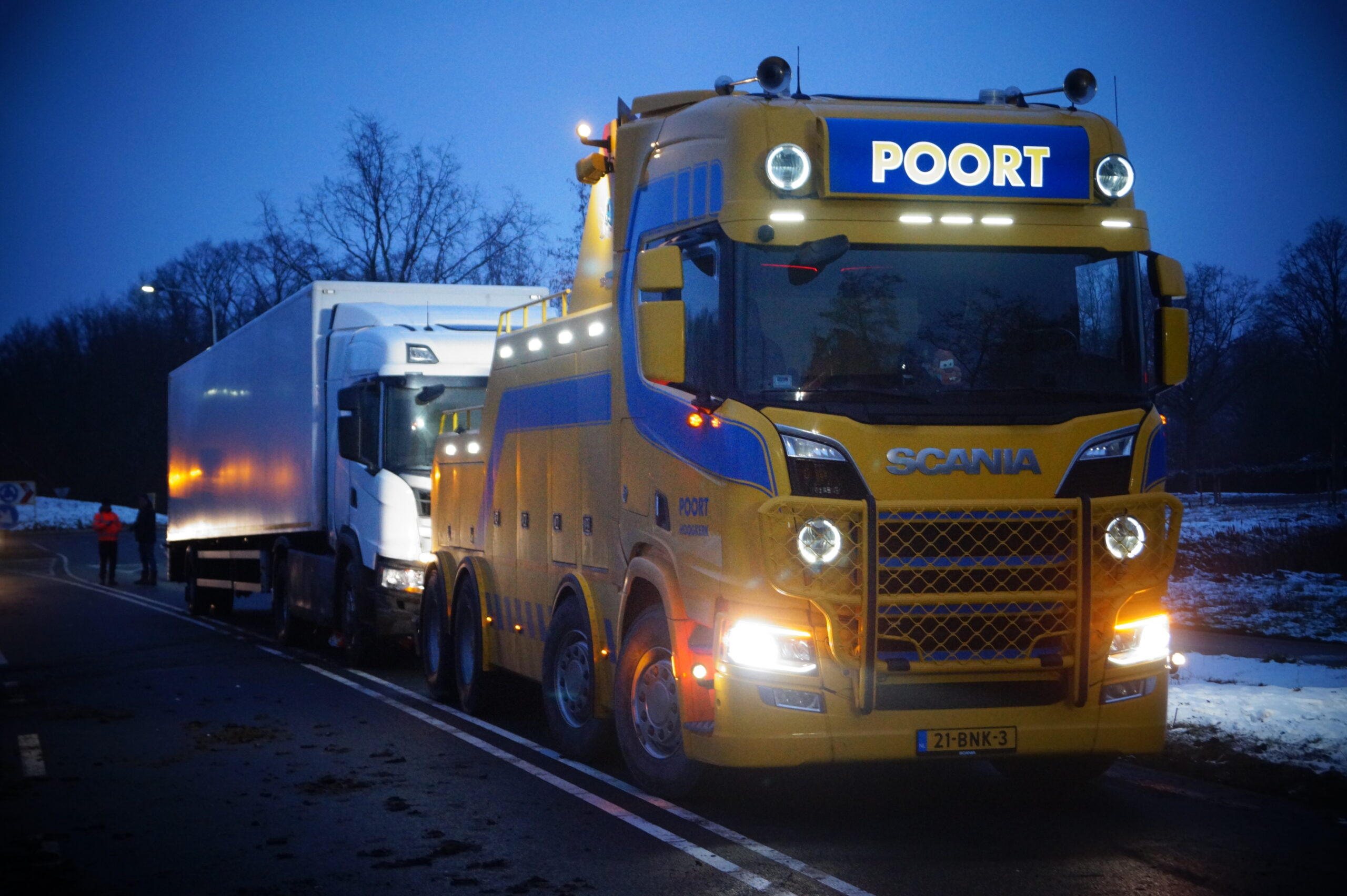 Het verkeer werd stilgelegd terwijl een lege vrachtwagen werd ingezet om het verse brood over te laden, zodat het brood alsnog naar de supermarkten in de regio kon worden vervoerd.