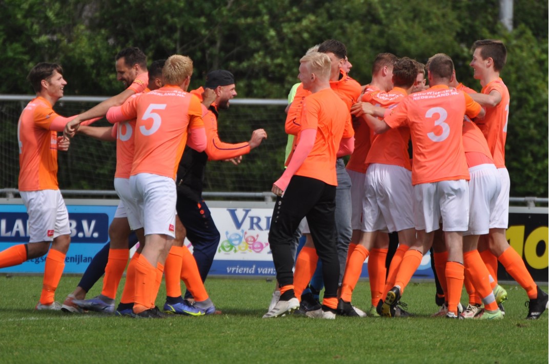 NIJLAND – In de voorlaatste wedstrijd van het seizoen heeft de VV Kollum toch weer aansluiting gevonden bij koploper ’t Fean 58. In Nijland werd de plaatselijke VV in de blessuretijd op een terechte nederlaag getrakteerd en moesten de mannen uit Surhuisterveen een nederlaag incasseren in Idskenhuizen. Het verschil op de ranglijst bedraagt nu nog maar één punt in het voordeel van de Feansters, waardoor de druk er behoorlijk op zal zitten wanneer op de slotdag de beslissing in de titelstrijd van de 2e klasse I moet en zal vallen.
