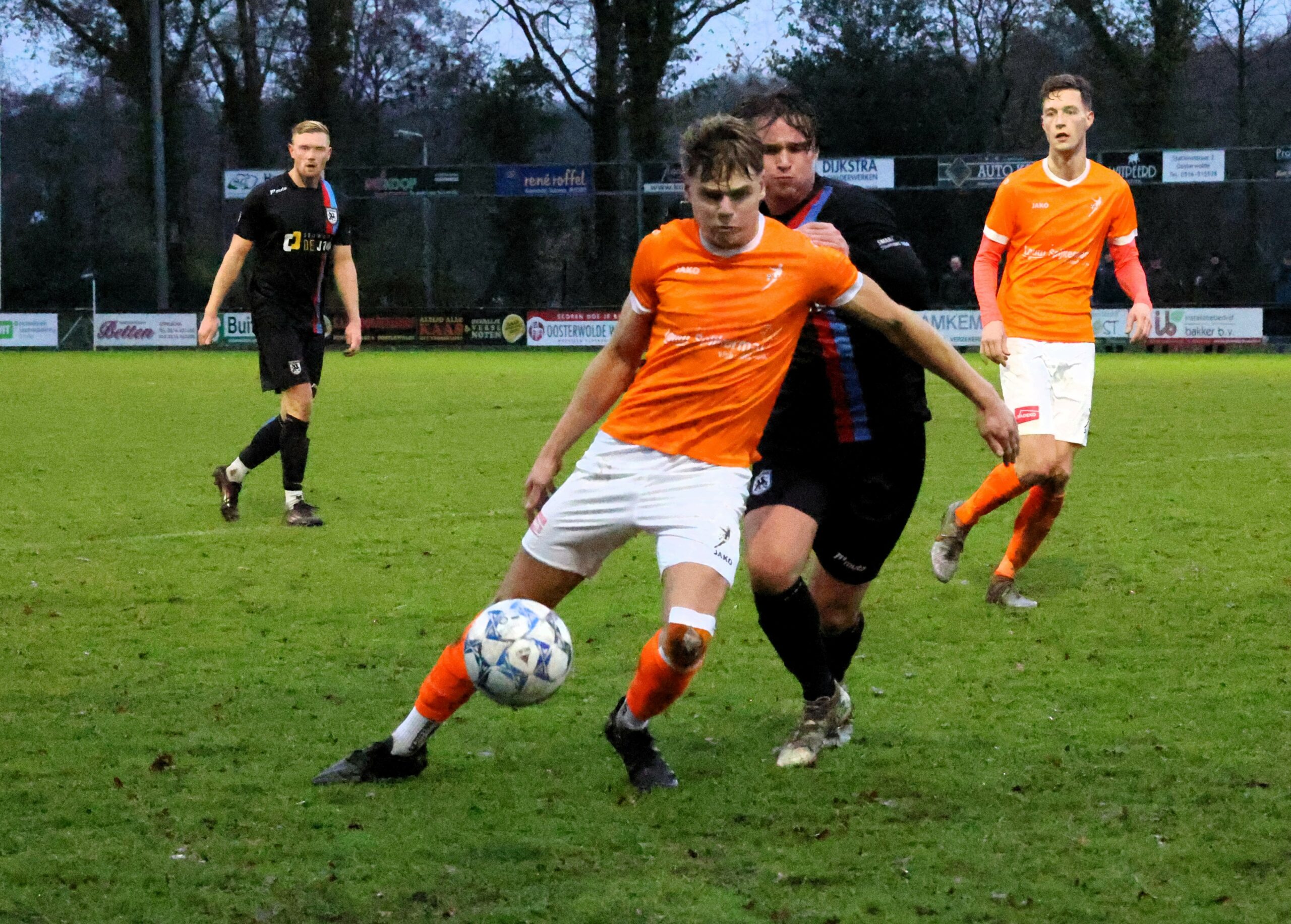 OOSTERWOLDE – Op zaterdag 6 december 2025 stond de uitwedstrijd tegen sv Oosterwolde op het programma voor VV Kollum. Een regelrechte topper in de 3e klasse Q. Afgelopen dinsdag won Oosterwolde de inhaalwedstrijd uit de 1e periode met 2-0 van VV Veenhuizen. Met die overwinning verdiende de ploeg 3 punten en de 2e plaats op de ranglijst. Maar deze overwinning was niet voldoende voor de winst in de 1e periode. Want die was voor VV Kollum omdat de oranjehemden de ploeg uit de Stellingwerven op doelsaldo voor bleef. Een mooie steun in de rug om de wedstrijd tegen de degelijke en fysiek sterke ploeg van trainer Mark Peters aan te gaan.