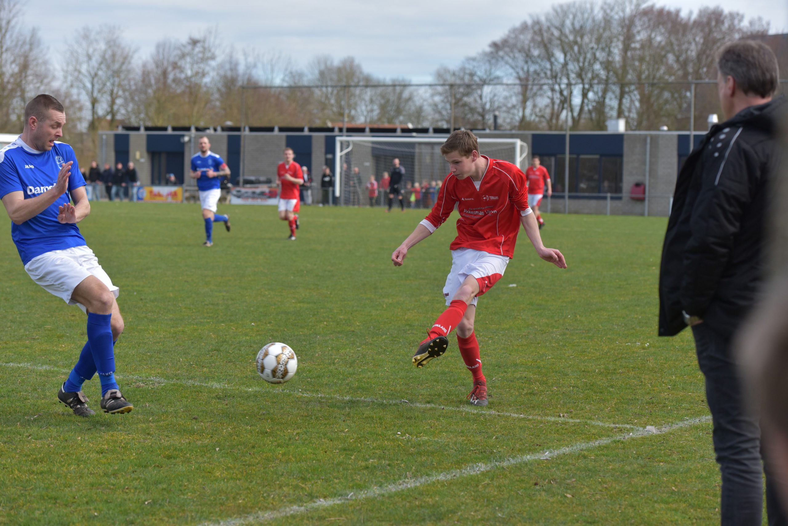 TERNAARD – VV Ternaard heeft zaterdagmiddag met ruime cijfers van VIOD gewonnen al leek dat er in de eerste helft er niet op. Want van goed voetbal was geen sprake deze middag op het harde en slechte veld waar beide ploegen mee kampten overigens deze middag. Gezien de stand op de ranglijst had VIOD dinsdagavond Ternaard kunnen passeren bij winst op WTOC, echter het verloor met 0-2 en dus was VIOD geprikkeld om deze nederlaag weg te poetsen. Daarentegen zit Ternaard in een flow en staat het als een huis momenteel bij Ternaard met vier overwinningen en één gelijk spel. Zo kon trainer van Klaarbergen over een fitte selectie beschikken en miste hij alleen Andries Vlasman die nog geblesseerd was.