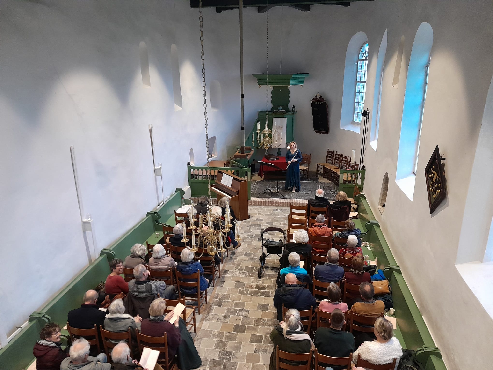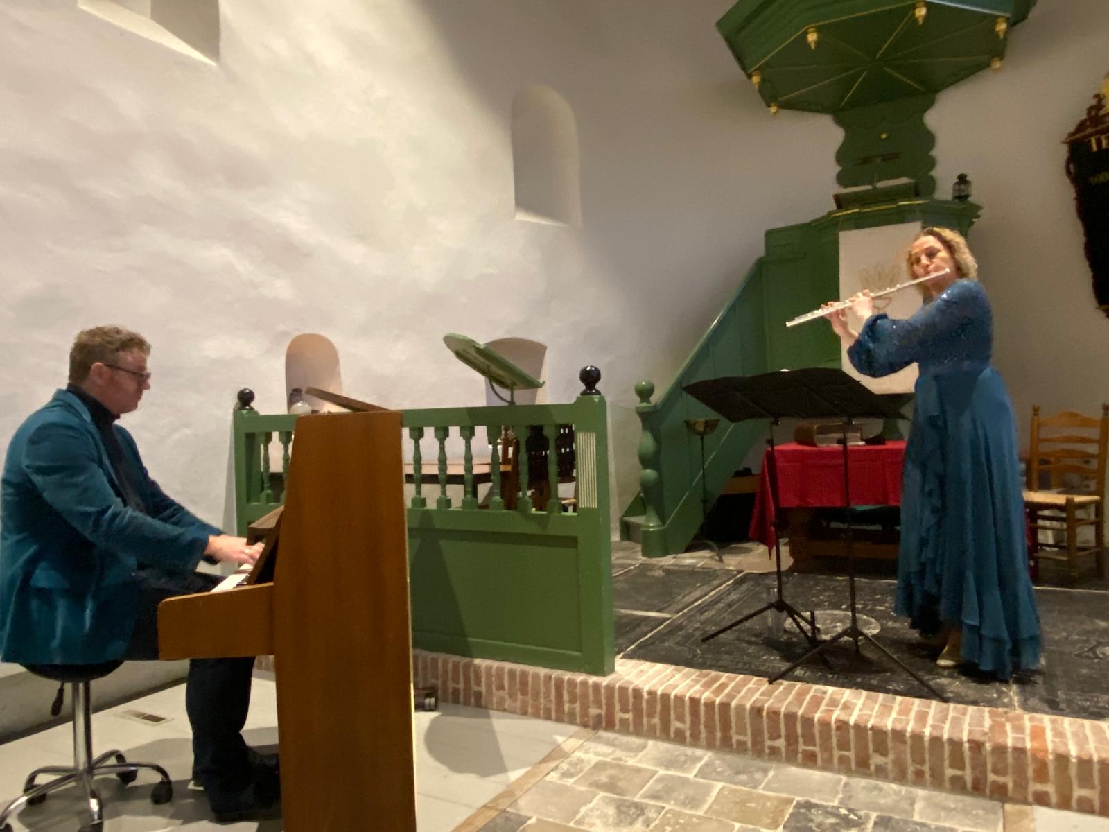 Van overal kwamen er mensen tegen de terp op voor het concert. Zelfs uit Brummen en Meppel, familie van Ilse, inclusief haar ouders die een cd van haar in ontvangst mochten nemen. In het eenvoudige kerkje, waar ontvangst met koffie en thee was, genoot een flink aantal bezoekers van de sfeervolle muziek van Ilse Terpstra op de dwarsfluit en Sebastiaan Schippers op orgel en piano. De fluit klonk fraai door de ruimte en het kleine Van Vulpen-orgel weerde zich kranig en is fraai geïntoneerd waardoor het fijn klinkt.